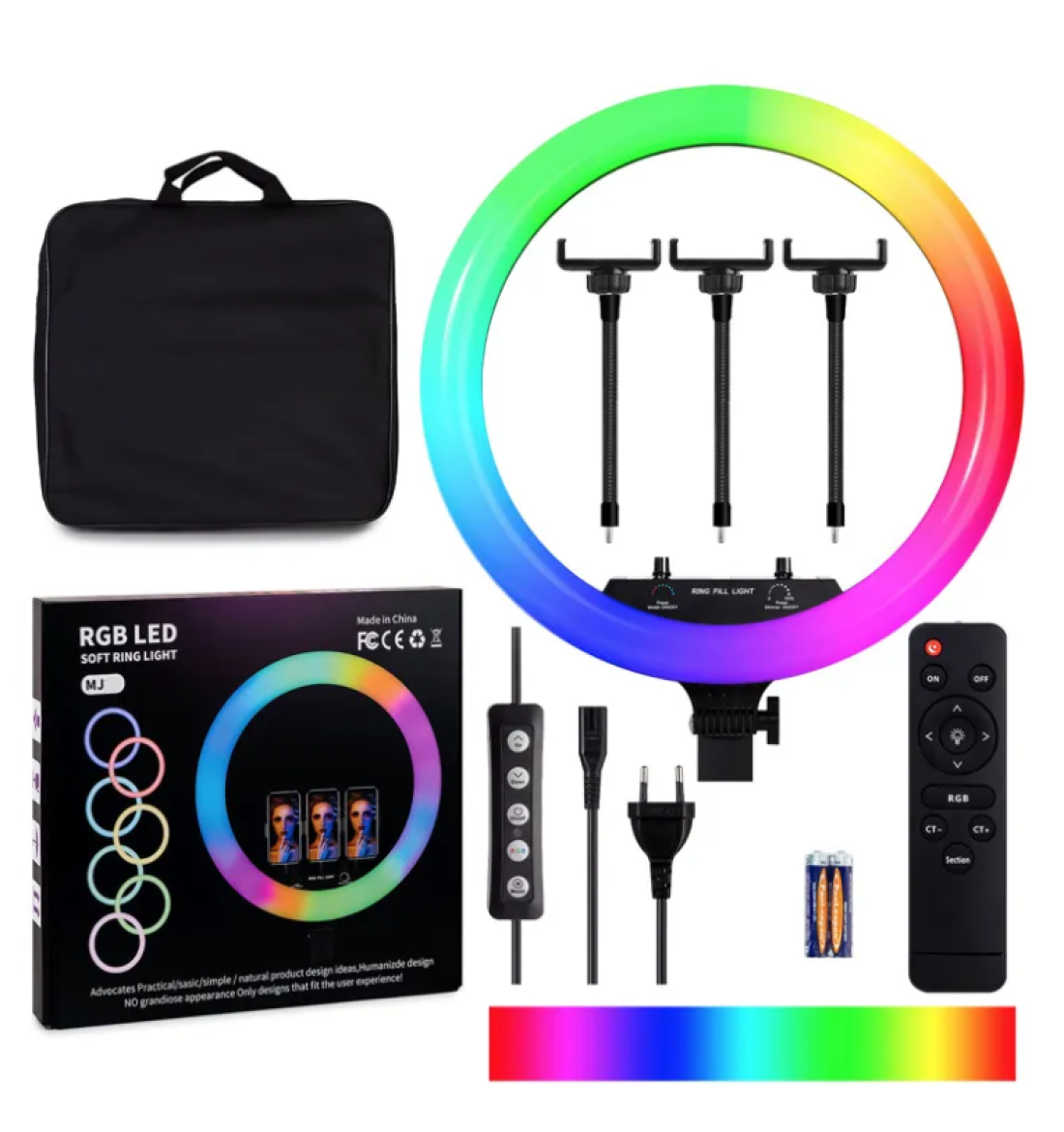 Кольцо для селфи 56см разноцветное с держателем для 3х телефонов+пульт, MJ56: сравнение цен, характеристики, фото, актуальное наличие и цены.