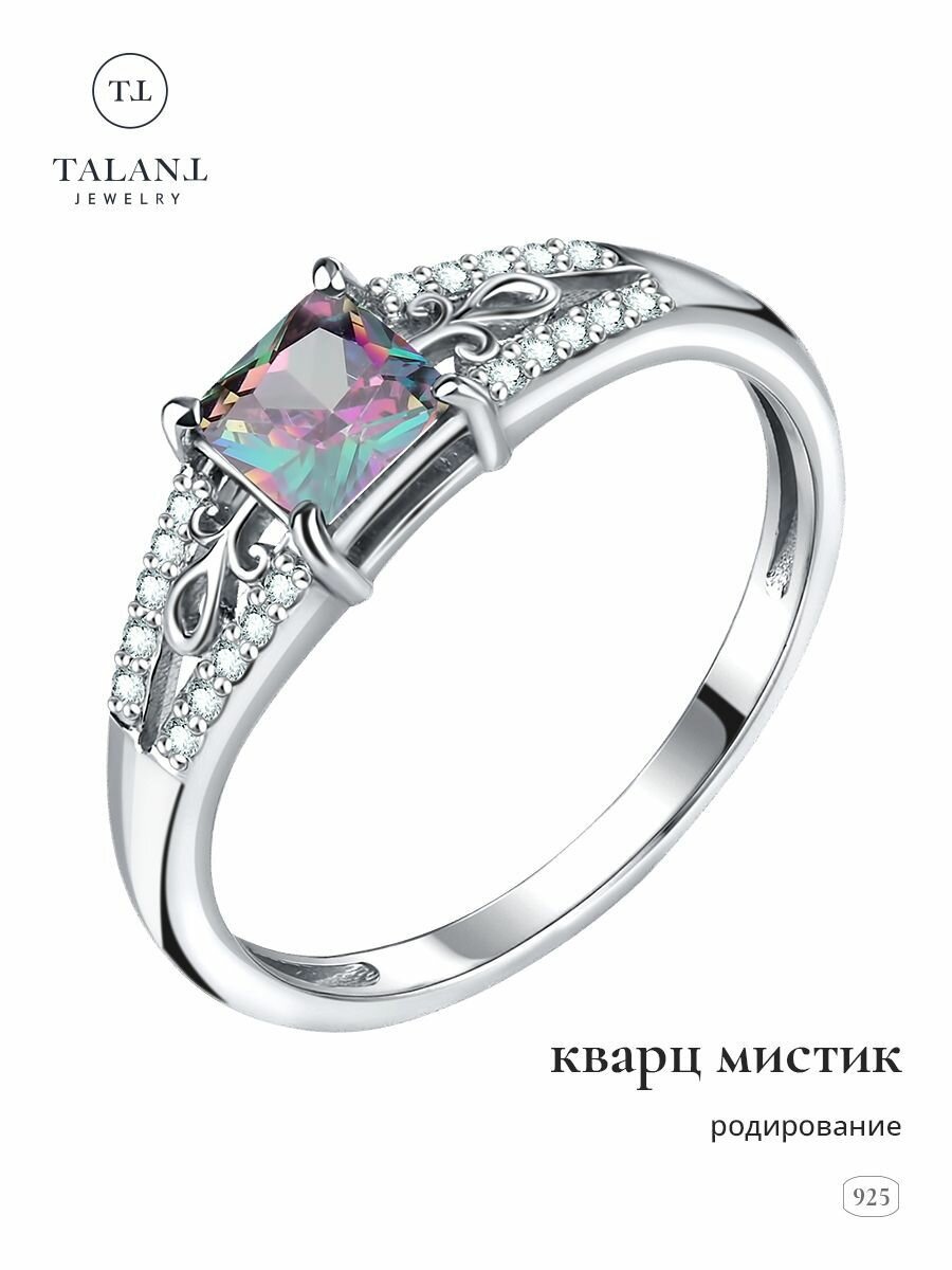 Купить Кольцо TALANT, серебро, 925 проба, родирование, фианит, кварц, размер 20, зеленый, серебристый с доставкой по всей России.
