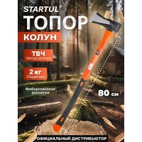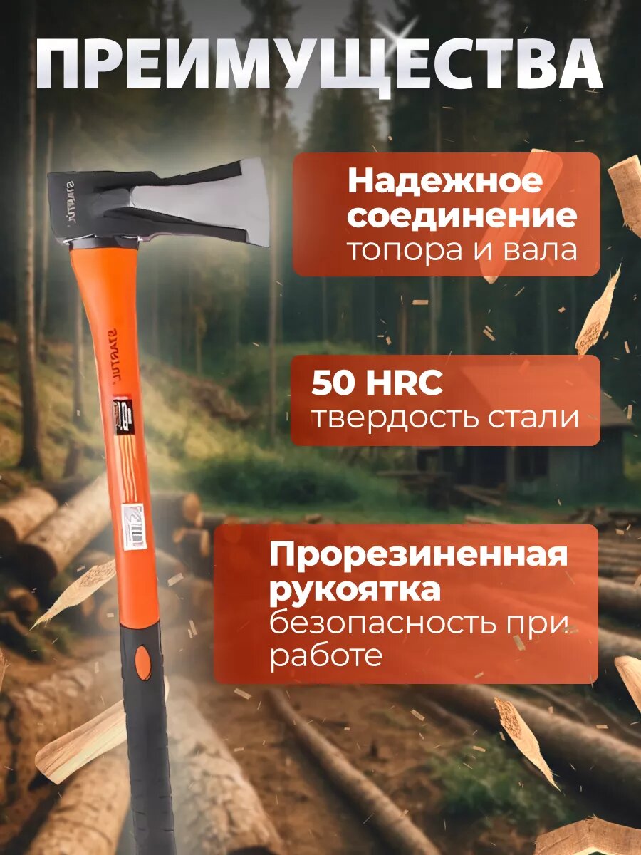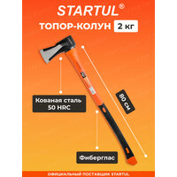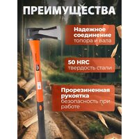 Топор для дров STARTUL MASTER серии ST2026-20 с фиберглассовой рукояткой -это надежный инструмент предназначен для выполнения плотницких работ любого типа, для рубки и тесания древесины разнообразных пород. Садовый режущий инструмент с ярким, привлекательным дизайном, сочетает в себе прочность и функциональность, что делает его идеальным выбором для задач по обработке дерева. Колун имеет лезвие специальной формы, которое позволяет раскалывать большие пни и поленья. Рабочее полотно изготовлено из качественной кованой стали, которое заточено и закалено методом ТВЧ, что обеспечивает надежность и устойчивость к механическим нагрузкам. Идеально подходит для тесания и рубки, делая инструмент универсальным для вашей деятельности. Твердость рабочей кромки, составляющей 50 HRC, поддерживает остроту лезвия на длительное время, позволяя с легкостью проникать в древесину и выполнять работу с минимальными усилиями, например колка дров, плотницкие работы и тесания древесины различных пород, а также выборка пазов нужного размера. Рукоятка инструмента из фибергласса с накладкой в нижней части из мягкой резины, отлично поглощает колебания, возникающие при работе, не передавая их на руку, обладает высокой механической прочностью, устойчиво к воздействию агрессивной среды. Длина топорища 800 мм, имеется отверстие для удобного хранения в подвешенном виде. Покрытие из термопластичной резины мягкое на ощупь, препятствует выскальзыванию топора, удобно лежит в руке, что важно для продолжительного использования инструмента. Используется в походе, на садовом участке, для сада и дачи. Вес инструмента 2 кг. Топоры Стартул подходят для отдыха на природе, прекрасно дополнят любой набор туриста и туристические аксессуары. Многофункциональный плотницкий топор - отличный подарок мужчине, парню, другу, любимому, мужу, отцу, деду. Инструмент подойдет если Вы искали: большой тапор для кемпинга походный топор с собой в поход для охоты. Подходит охотнику, рыбаку, туристу, пожарному, любителям пикника, кемпинга, туризма, похода и шашлыков. Высококачественный топор-колун будет желанным подарком для мужчины на 23 февраля, день рождения, новоселье и без повода. Бюджетный подарок рыбаку, автомобилисту, военному, полицейскому топор для охоты, сада, огорода, дачи, гаража, туризма для похода и рыбалки.