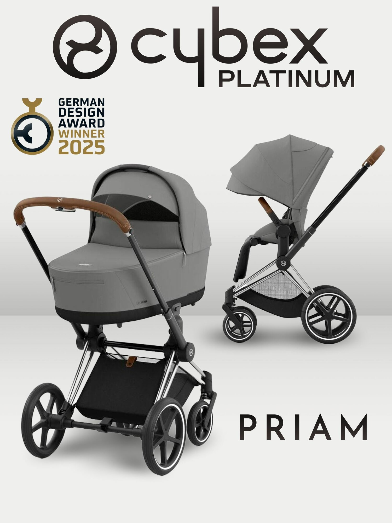 Купить Коляска CYBEX Priam IV Chrome Brown 2 в 1 цвет Mirage Grey с доставкой по всей России.