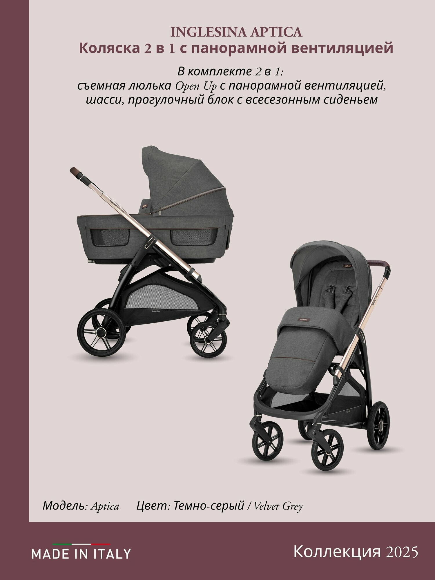 Купить Коляска 2 в 1 Inglesina Aptica Velvet Grey с доставкой по всей России. Коляска 2 в 1 Inglesina Aptica Velvet Grey: сравнение цен, характеристики, фото, актуальное наличие и цены.