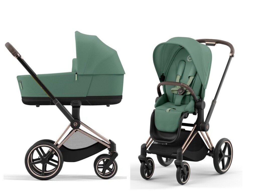 Коляска 2 в 1 Cybex Priam IV leaf green (шасси rose gold): сравнение цен, характеристики, фото, актуальное наличие и цены.