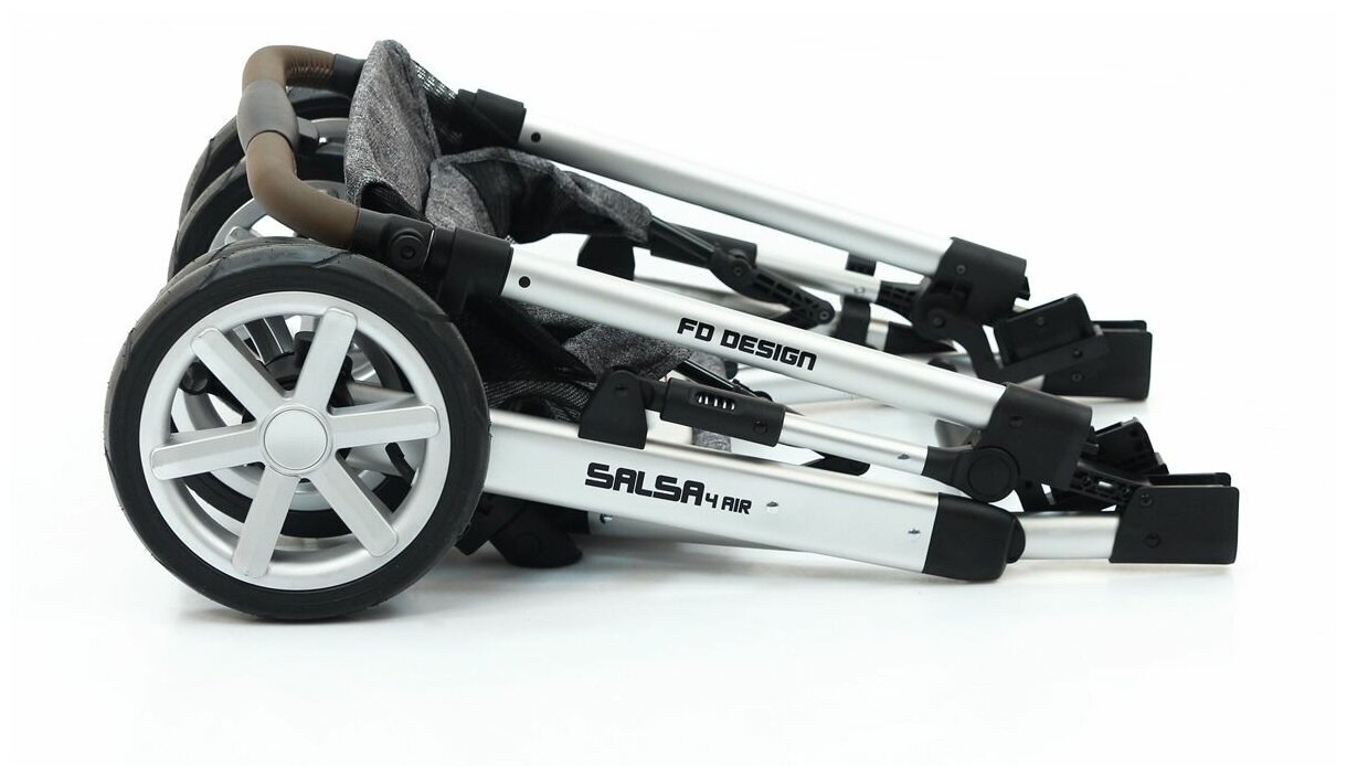 Salsa 4 AIR очень динамичная, маневренная и чрезвычайно легкая в управлении. С первых дней жизни она станет надежным компаньоном для Вас и малыша — шариковые подшипники, встроенная подвеска и надувные шины сделают прогулку комфортной как в городе, так и на сложной пересеченной местности (например, пляж, лес, снег и др.). В сложенном виде рама очень компактна, её очень просто хранить, перевозить в багажнике или транспортировать в путешествиях.