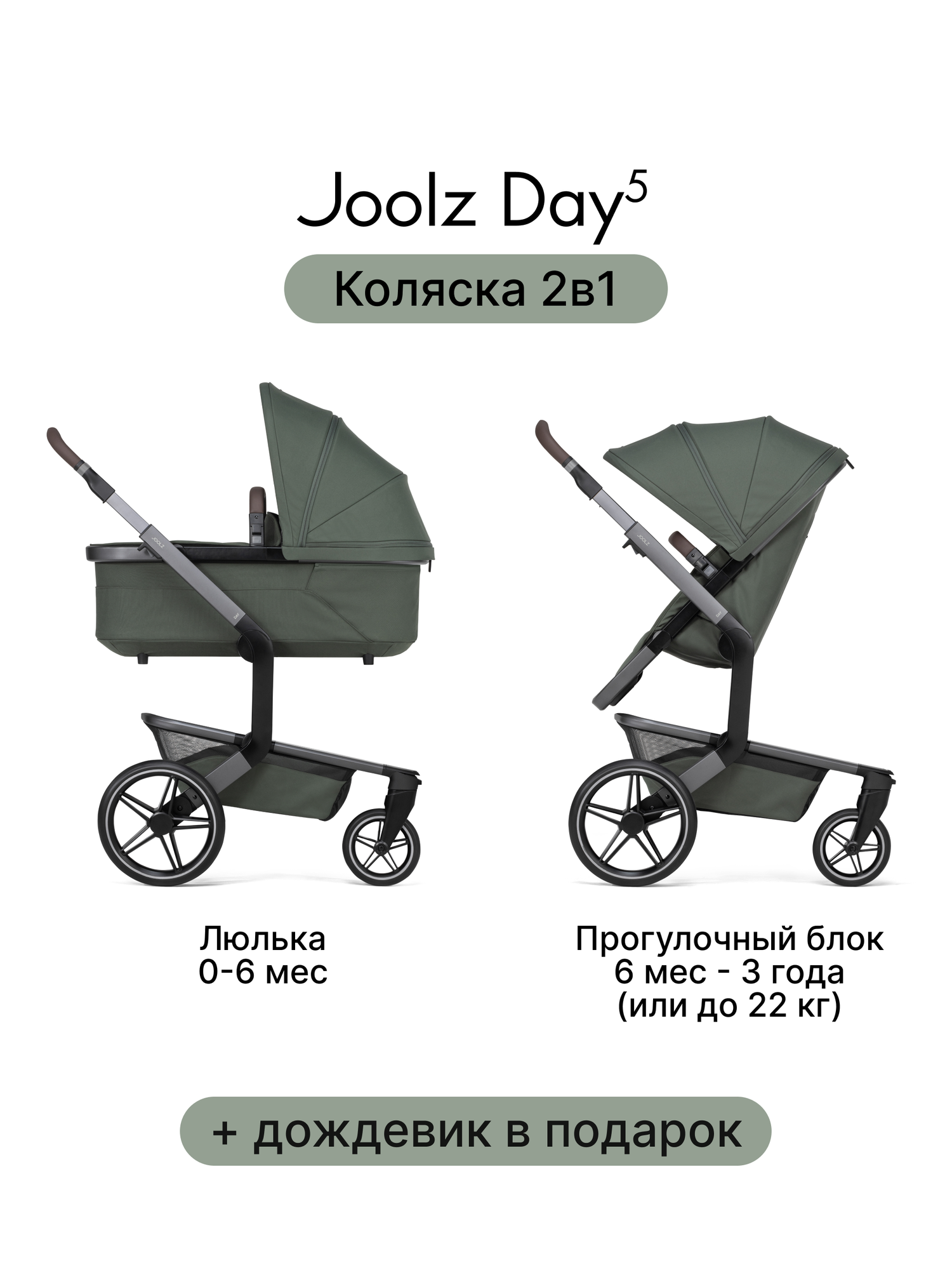 Joolz Day 5 Forest Green с дождевиком, зеленая, детская коляска 2 в 1 с люлькой и сиденьем, для детей с рождения и до 3 лет: сравнение цен, характеристики, фото, актуальное наличие и цены.