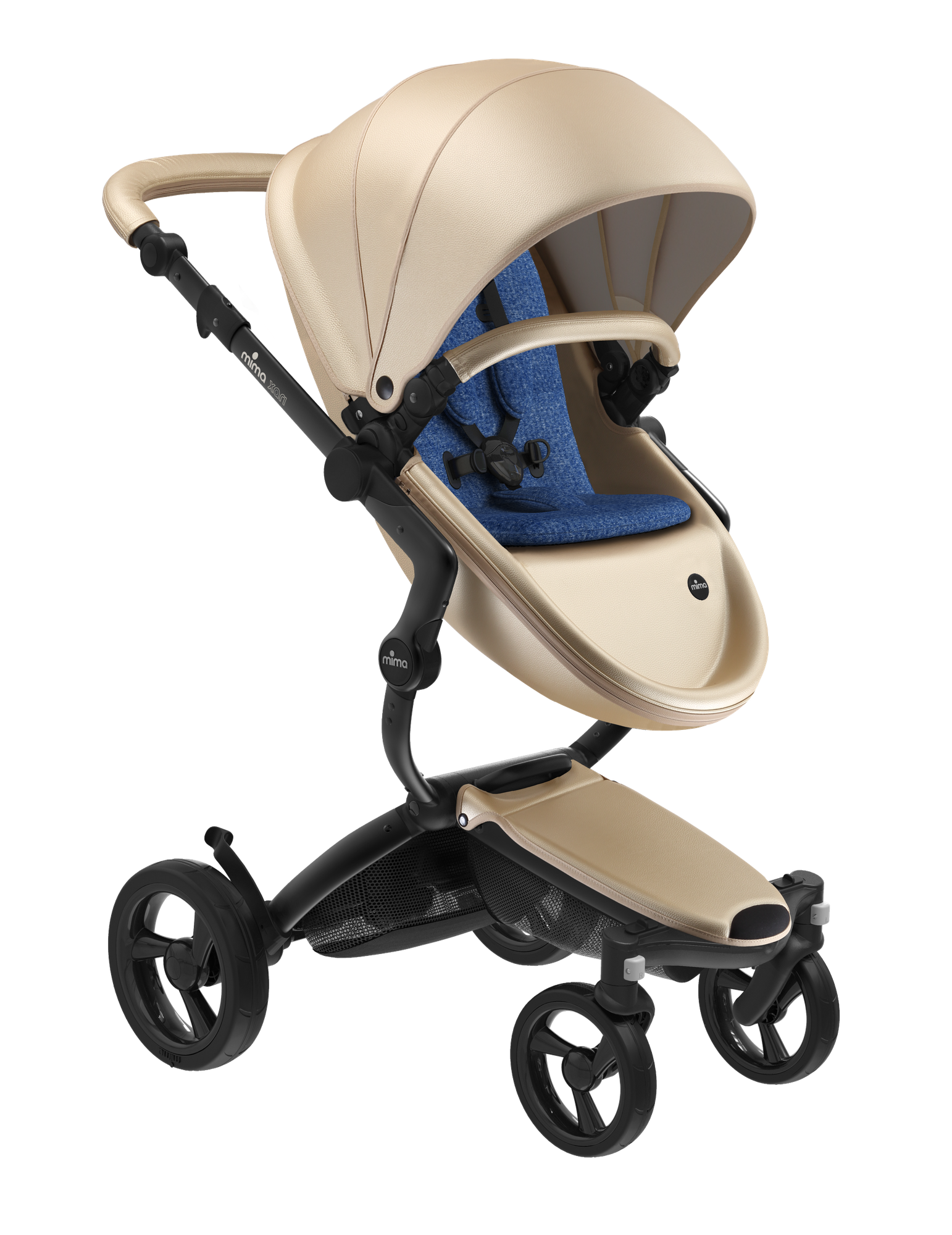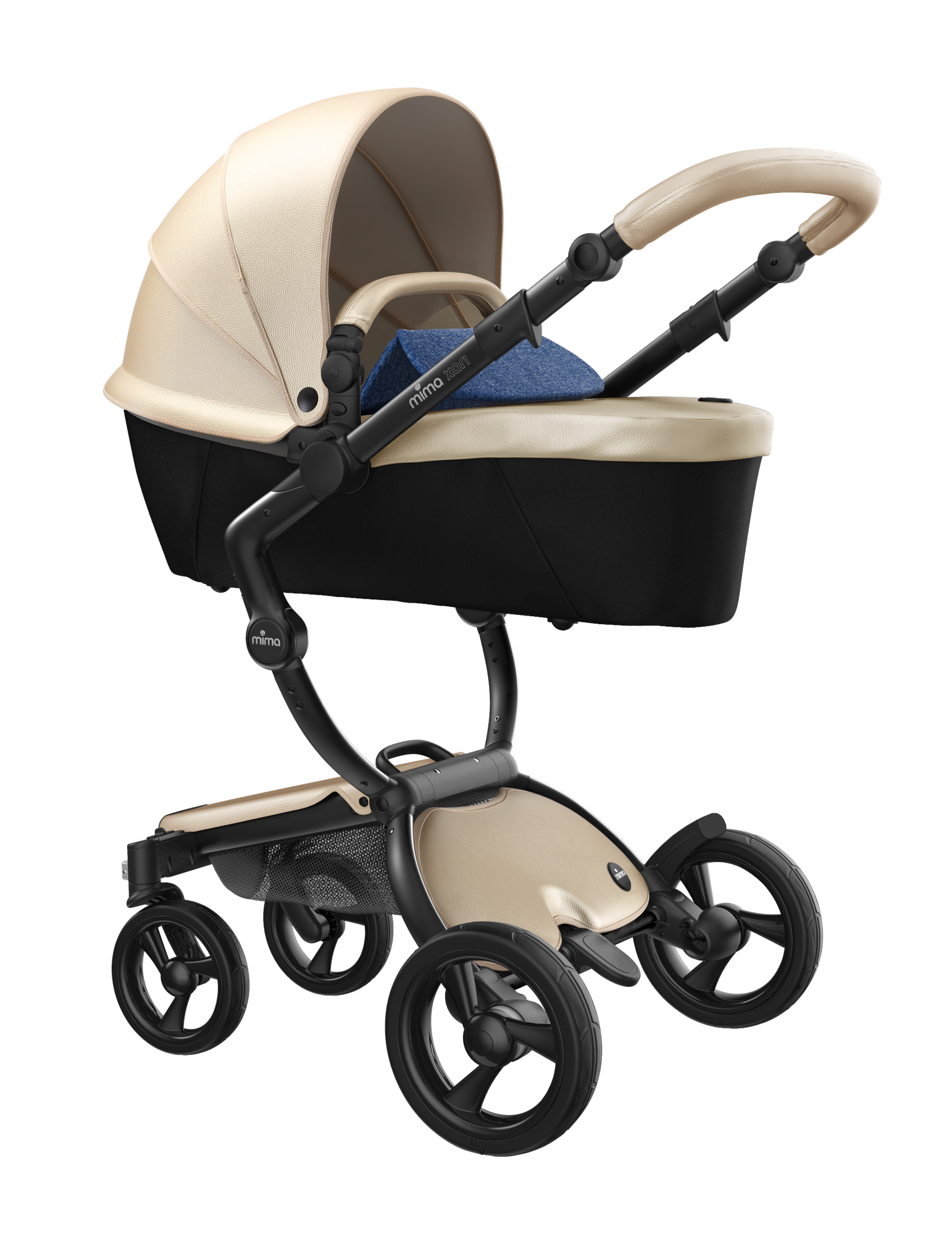 Купить Коляска 2в1 Mima Xari Champagne на чёрном шасси с матрасиками Denim Blue+конверт Champagne с доставкой по всей России.