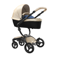 Коляска 2в1 Mima Xari Champagne на чёрном шасси с матрасиками Denim Blue+конверт Champagne: сравнение цен, характеристики, фото, актуальное наличие и цены.