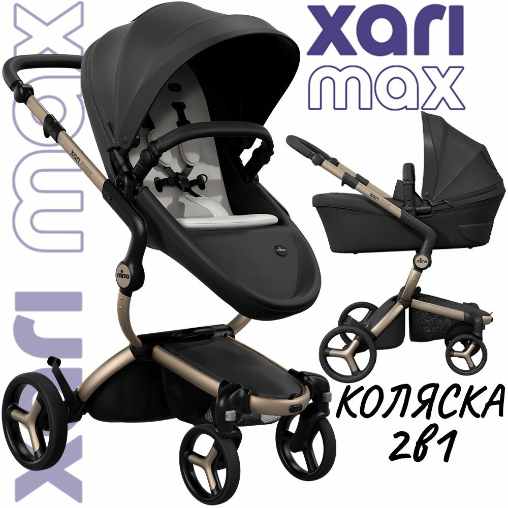 Коляска 2в1 Mima Xari Max Black с матрасиком Stone White (Белый) на шасси шампань: сравнение цен, характеристики, фото, актуальное наличие и цены.