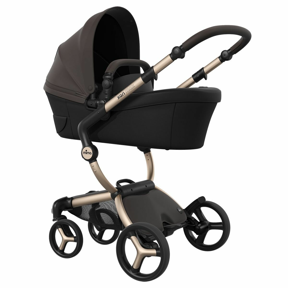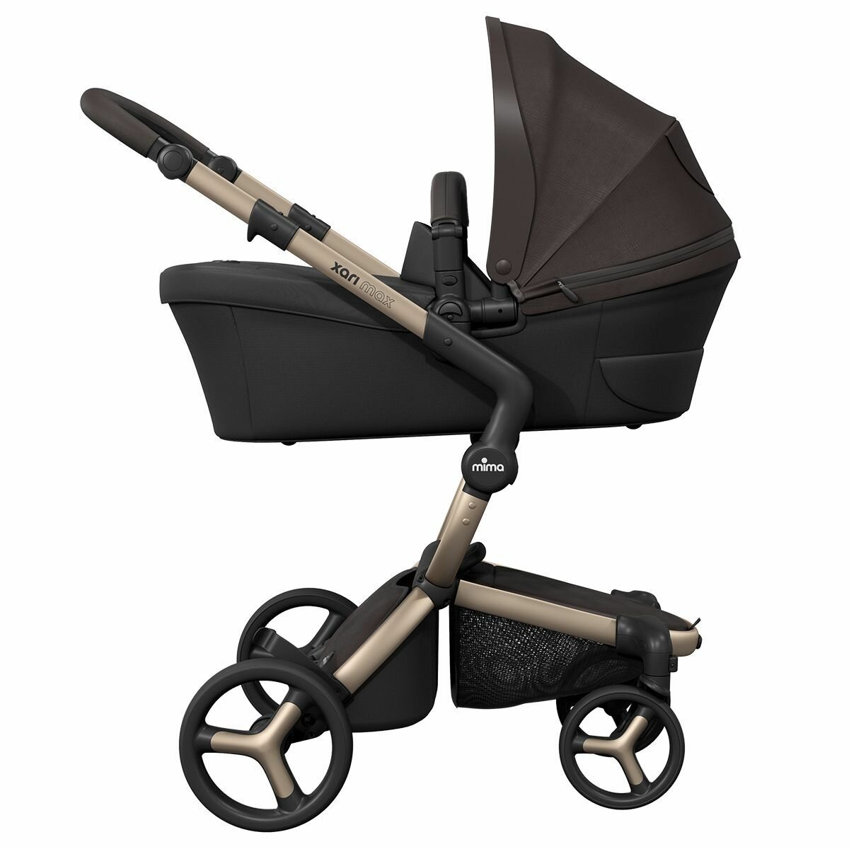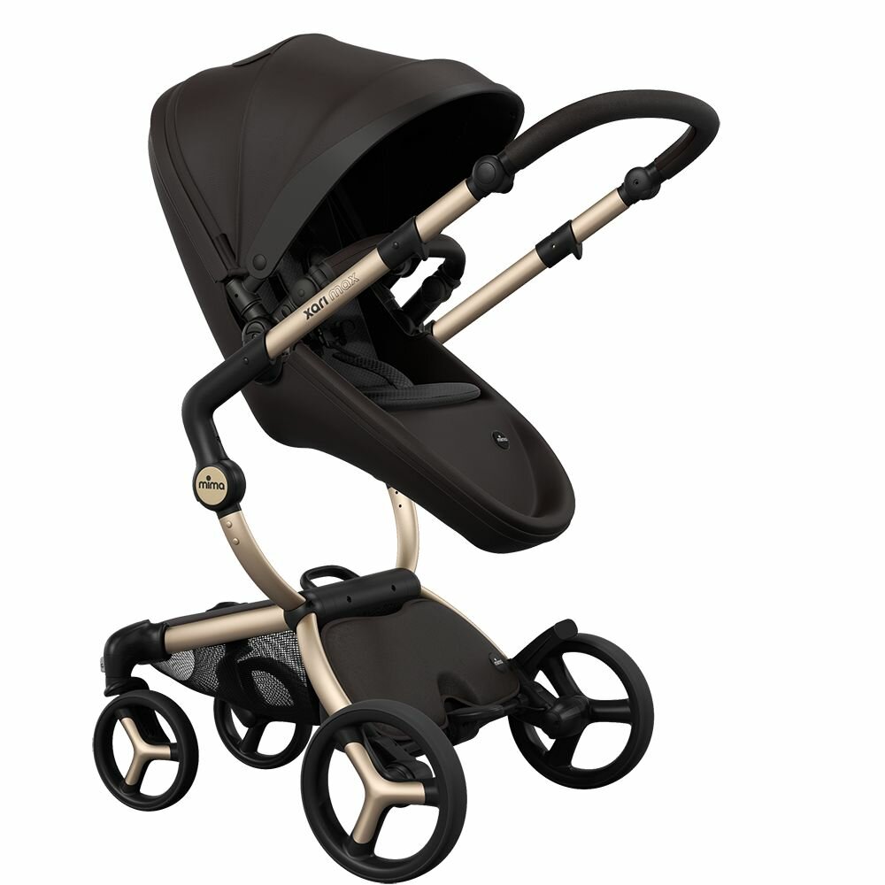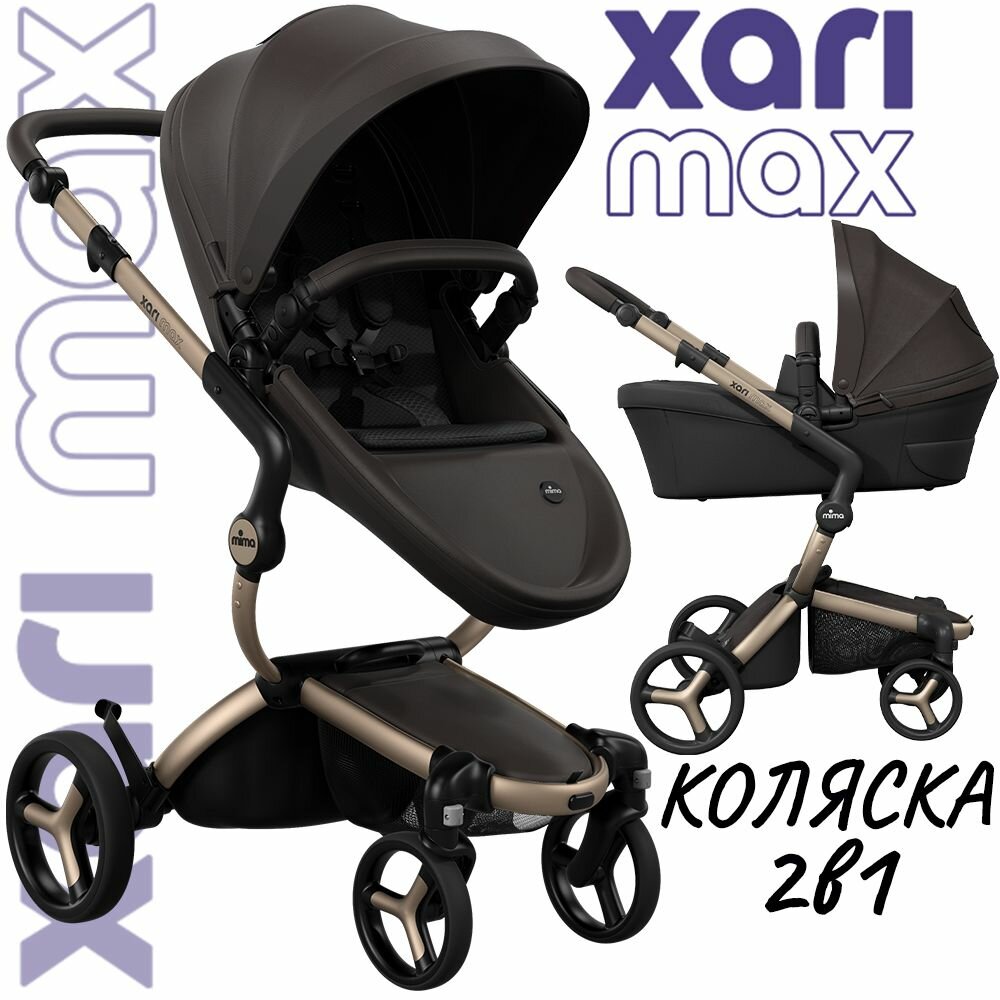 Коляска 2в1 Mima Xari Max Chocolate Brown с матрасиками Black (Черный) на шасси шампань: сравнение цен, характеристики, фото, актуальное наличие и цены.