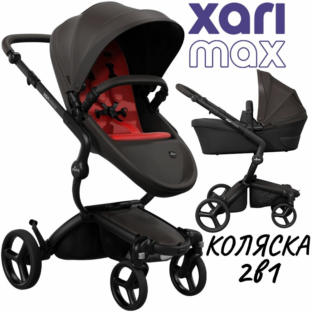 Коляска 2в1 Mima Xari Max Chocolate Brown с матрасиками Ruby Red (Красный) на черном шасси: сравнение цен, характеристики, фото, актуальное наличие и цены.