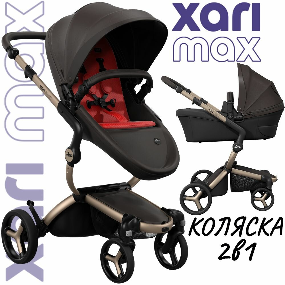 Коляска 2в1 Mima Xari Max Chocolate Brown с матрасиками Ruby Red (Красный) на шасси шампань: сравнение цен, характеристики, фото, актуальное наличие и цены.