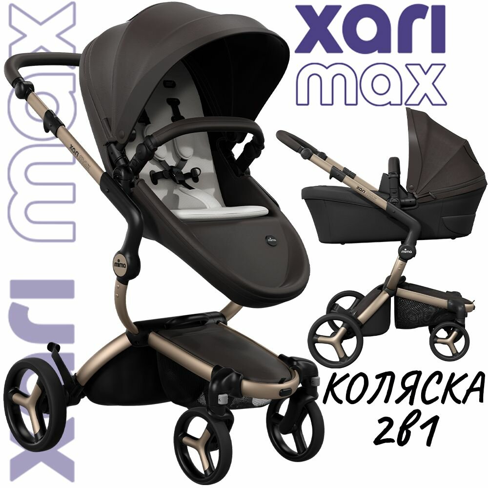 Коляска 2в1 Mima Xari Max Chocolate Brown с матрасиками Stone White (Белый) на шасси шампань: сравнение цен, характеристики, фото, актуальное наличие и цены.