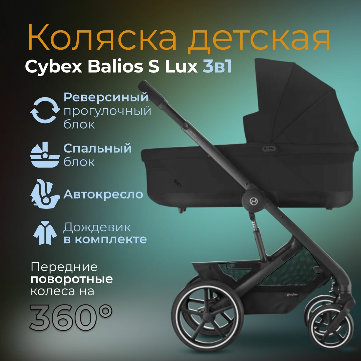 Коляска 3 в 1 Cybex Balios S Lux BLK Moon Black с дождевиком