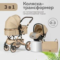 Купить Коляска 3 в 1 для новорожденных трансформер с сумкой, бежевая с доставкой по всей России.