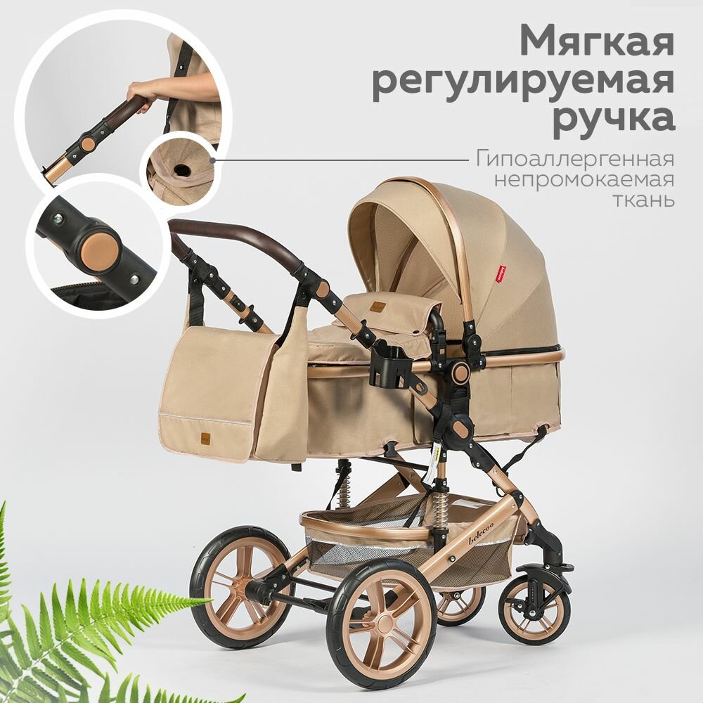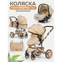 Купить Коляска 3 в 1 для новорожденных трансформер с сумкой, бежевая с доставкой по всей России.