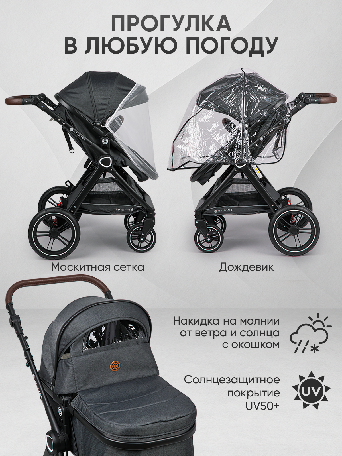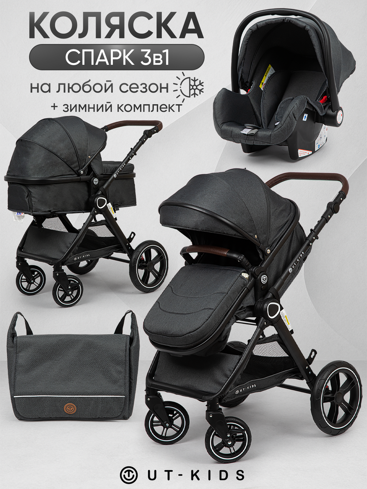 Коляска 3 в 1 для новорожденных спарк UT-Kids, всесезонная, с зимним комплектом, тёмно-серая: сравнение цен, характеристики, фото, актуальное наличие и цены.