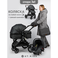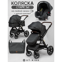 Купить Коляска 3 в 1 для новорожденных спарк UT-Kids, всесезонная, с зимним комплектом, тёмно-серая с доставкой по всей России.