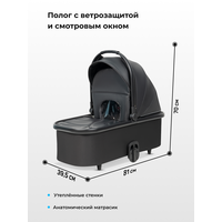 - Спальный модуль (с рождения до 7 мес.): утепленный по периметру подкладом на синтепоне. Ткань внутри люльки х/б, съемная. Модель имеет жесткое ровное дно для правильного развития позвоночника. Вместительное спальное место позволяет с комфортом разместить малыша. Спальный модуль имеет глубокий 3х-секционный капюшон с козырьком, который при необходимости можно убрать во внутрь. Капюшон имеет скрытую секцию из москитной сетки для проветривания в жаркое время года и встроенную москитную сетку. Блок имеет ножки, которые ограничивают контакт поверхности с тканью люльки.