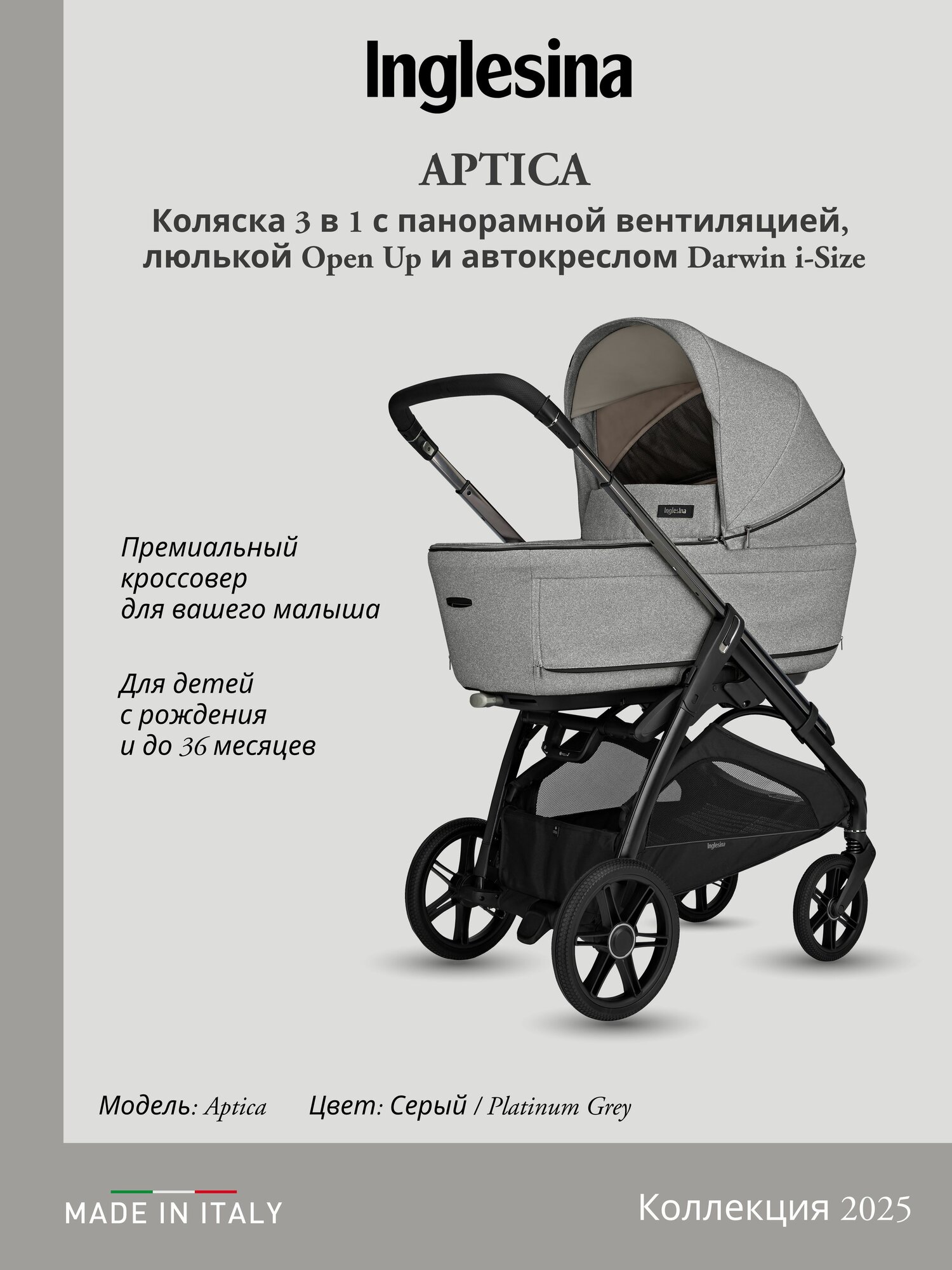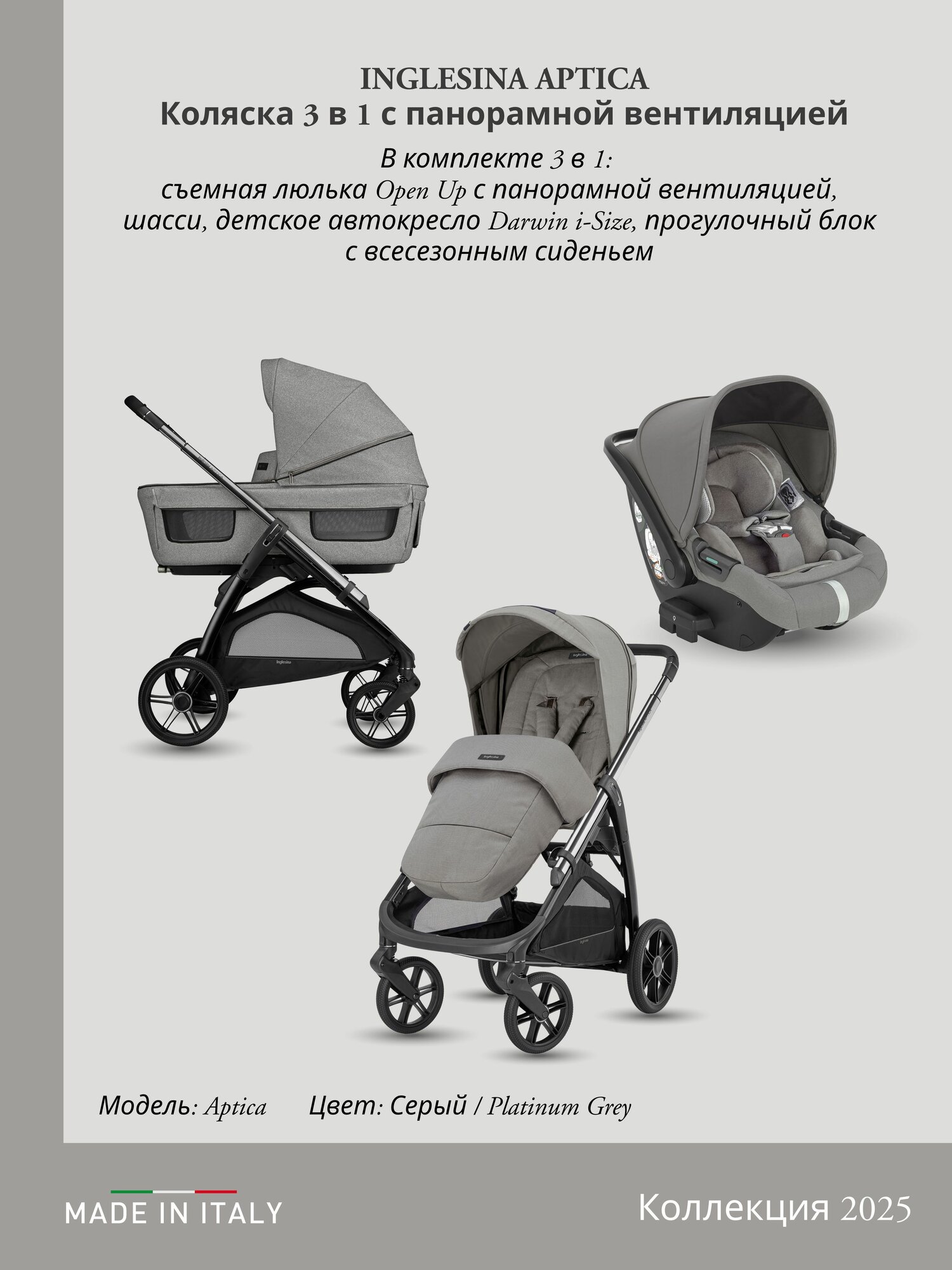 Коляска 3 в 1 Inglesina Aptica Darwin i-Size Platinum Grey: сравнение цен, характеристики, фото, актуальное наличие и цены.