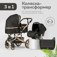 Купить Коляска 3в1 для новорожденных прогулочная трансформер с сумкой, черная с доставкой по всей России.
