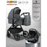 Купить Детская универсальная коляска 3 в 1 Jovola Pepper, всесезонная, реверсивный блок, темно-серый с доставкой по всей России.