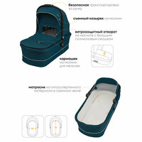 | Комплектация | адаптеры для крепления автокресла, анатомическая подушка, антимоскитная сетка, бампер, капюшон, матрас, накидка на ноги, подстаканник, рюкзак, солнцезащитный козырек |