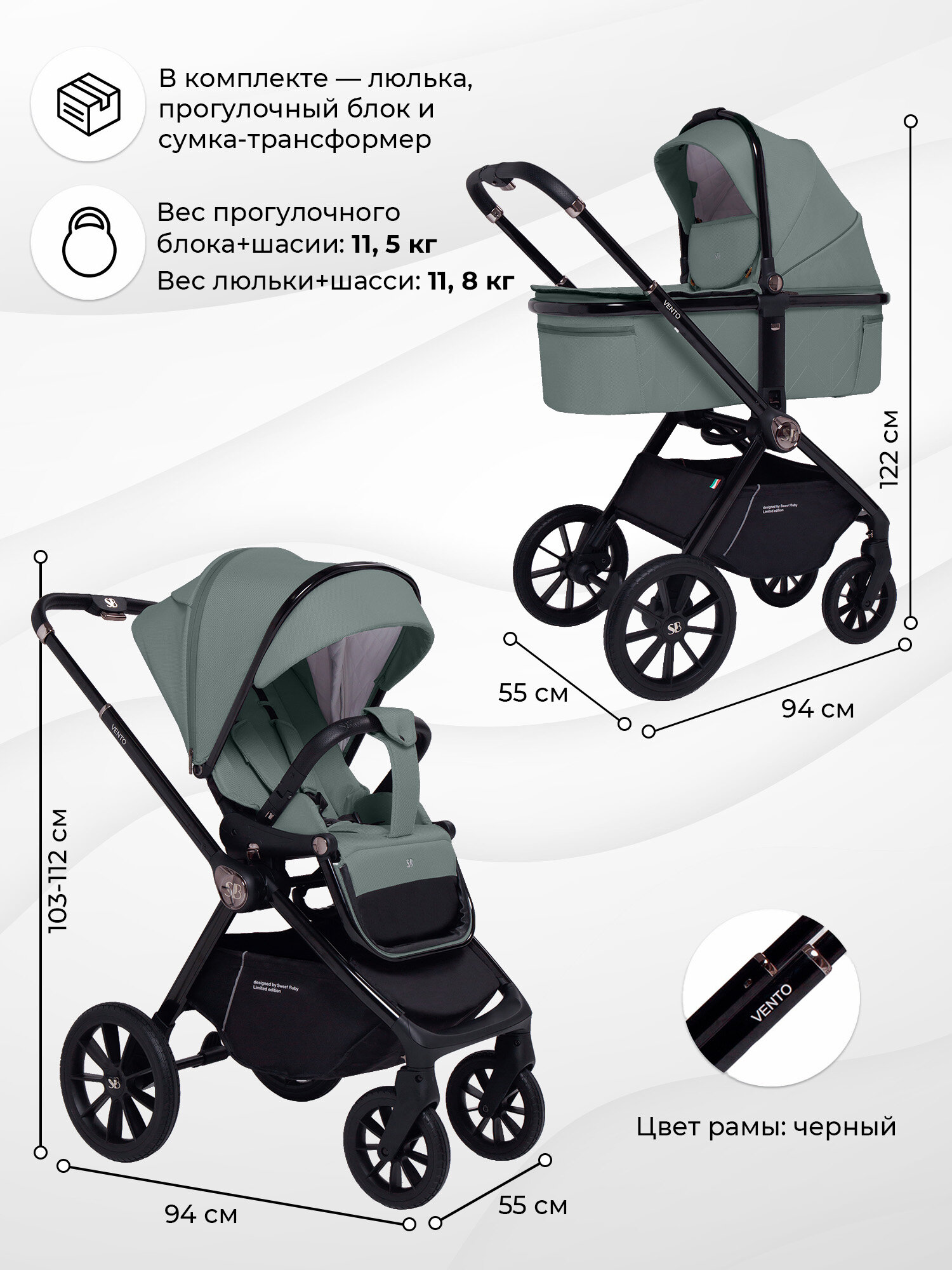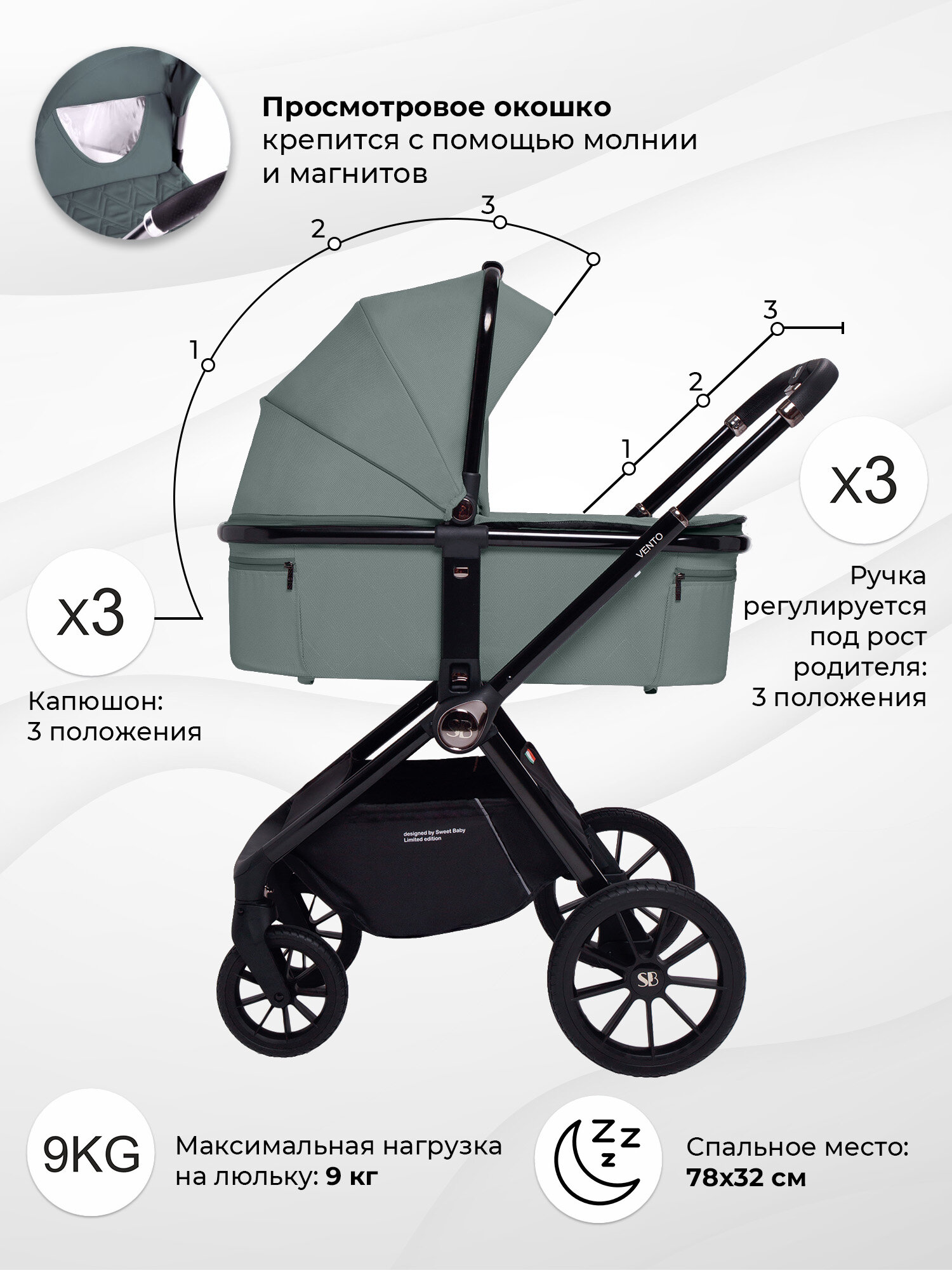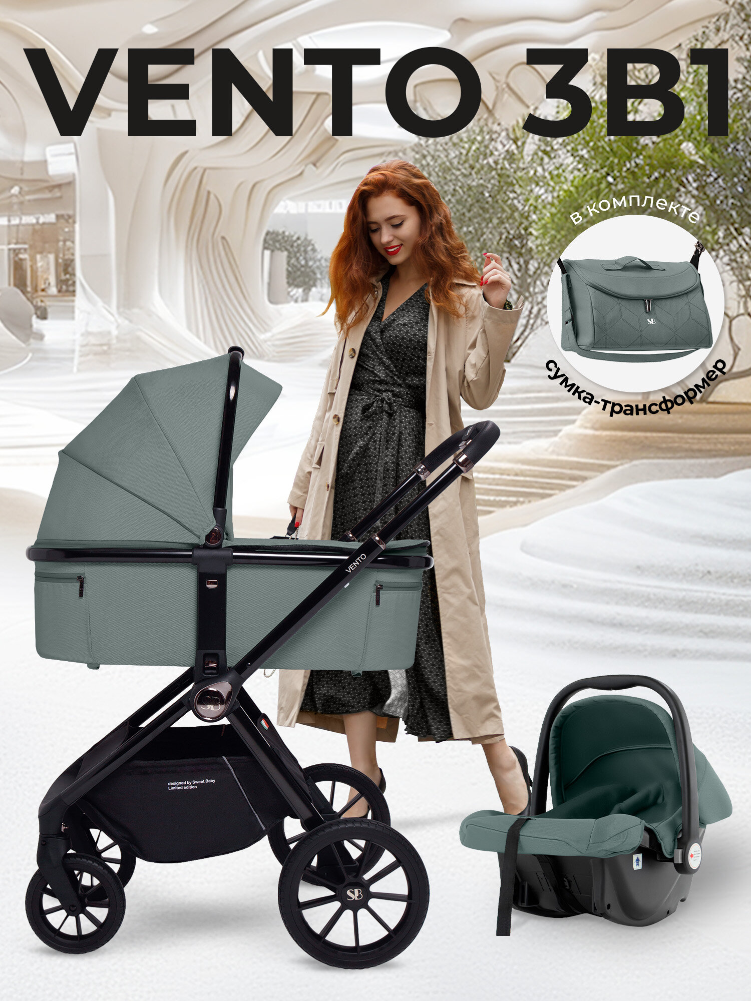Коляска 3в1 Sweet Baby Vento Green: сравнение цен, характеристики, фото, актуальное наличие и цены.