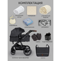 Купить Коляска детская 2 в 1 для новорожденных, трансформер, складная, с зимним комплектом, с сумкой, черная с доставкой по всей России.