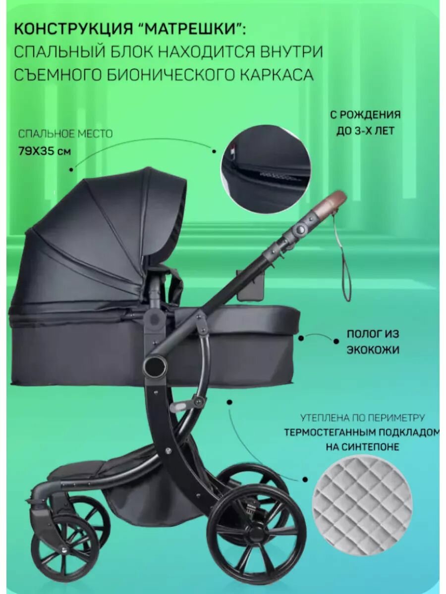 Коляска детская 2в1 New Lux 608-2 2в1 экокожа Для новорожденных и детей до 3-х лет, белая