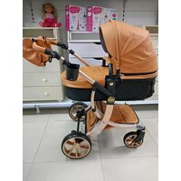 Купить Коляска детская 2в1 New Lux 608-2 2в1 экокожа Для новорожденных и детей до 3-х лет, коричневая с доставкой по всей России.