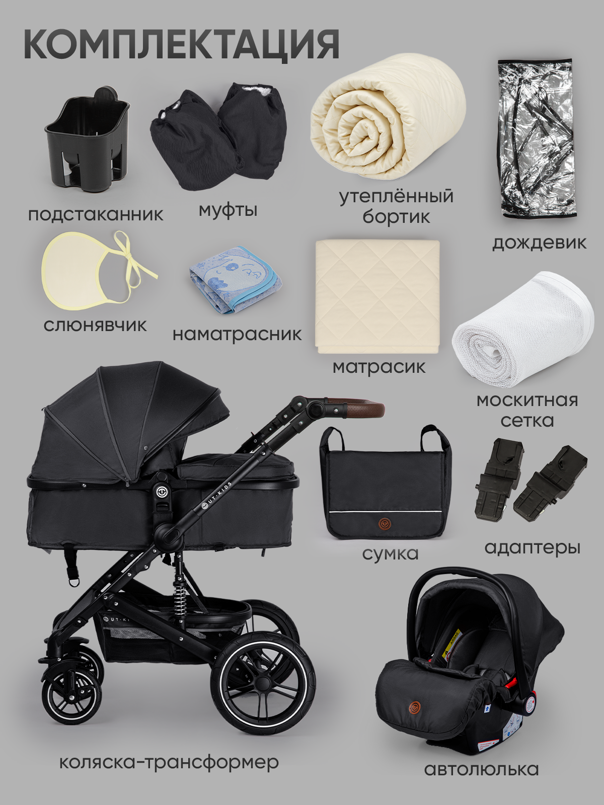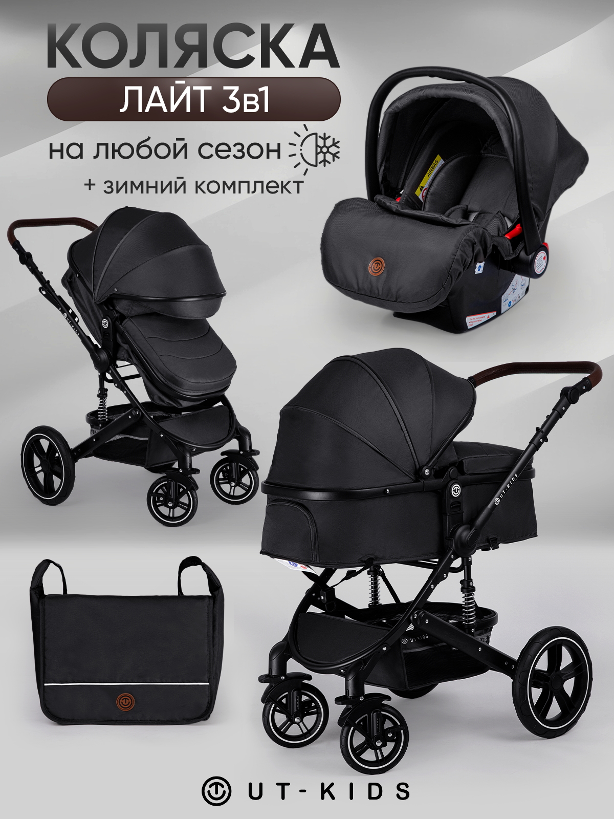 Коляска детская 3 в 1 для новорожденных лайт, трансформер, всесезонная, с зимним комплектом, лайт, складная, черная: сравнение цен, характеристики, фото, актуальное наличие и цены.