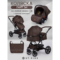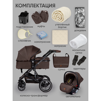 Купить Коляска детская 3 в 1 для новорожденных, трансформер, всесезонная, с зимним комплектом, лайт, складная, коричневая с доставкой по всей России.