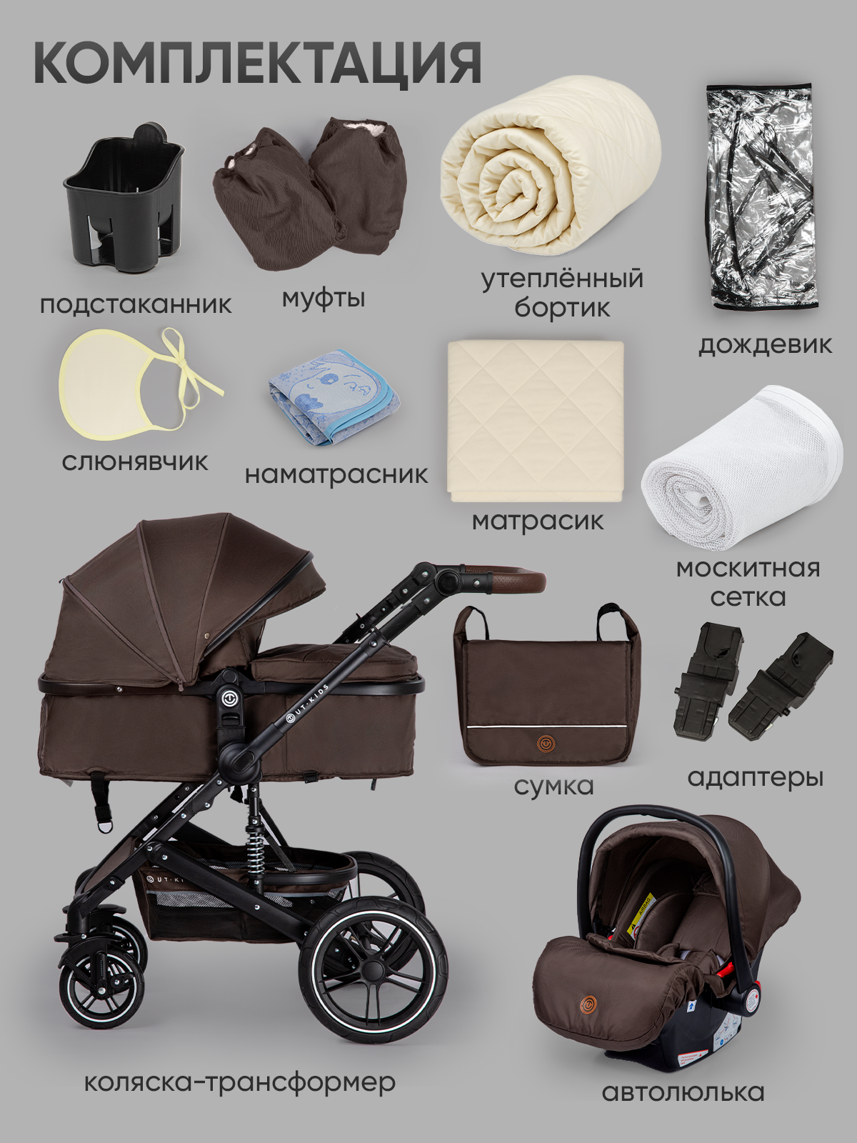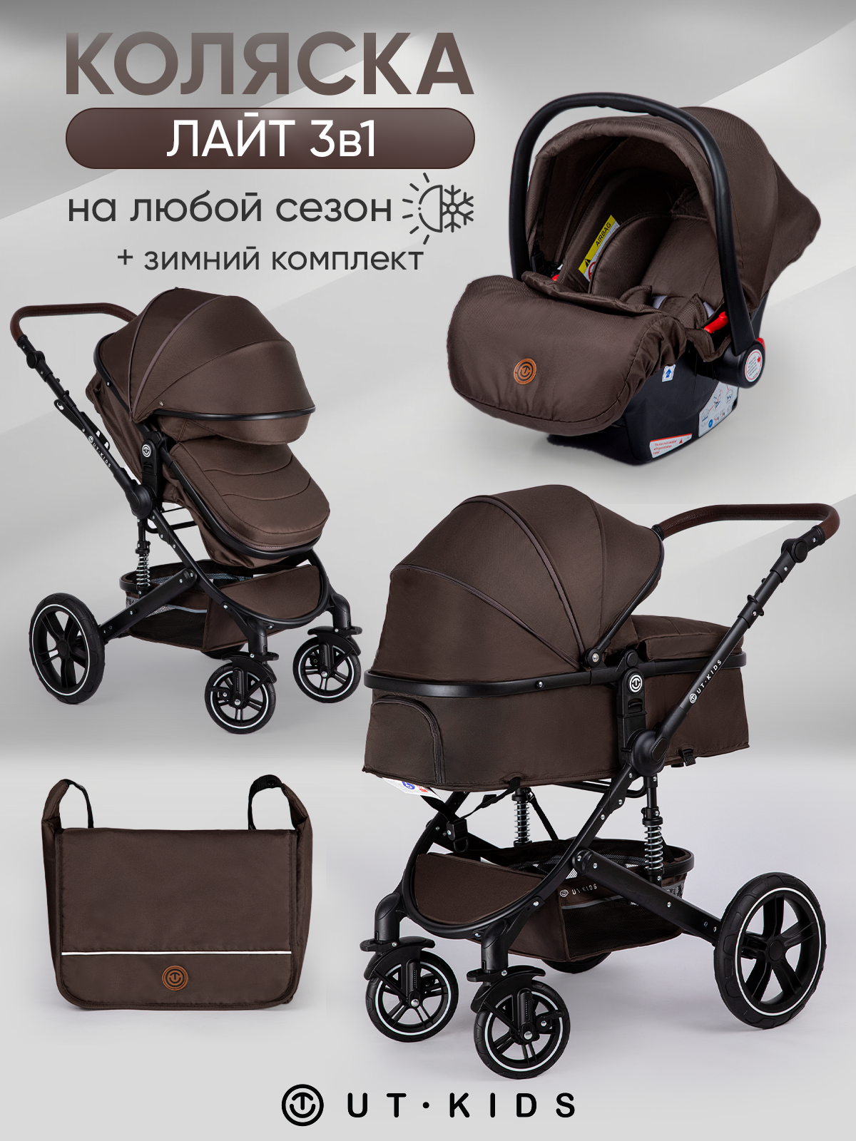 Коляска детская 3 в 1 для новорожденных, трансформер, всесезонная, с зимним комплектом, лайт, складная, коричневая: сравнение цен, характеристики, фото, актуальное наличие и цены.