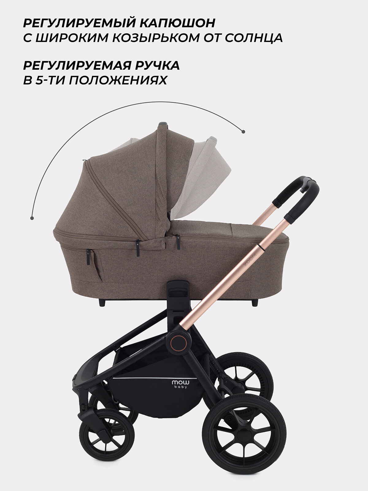 Коляска для новорожденных 2 в 1 MOWBaby ZOOM RA086 Gold Cacao Brown: сравнение цен, характеристики, фото, актуальное наличие и цены.
