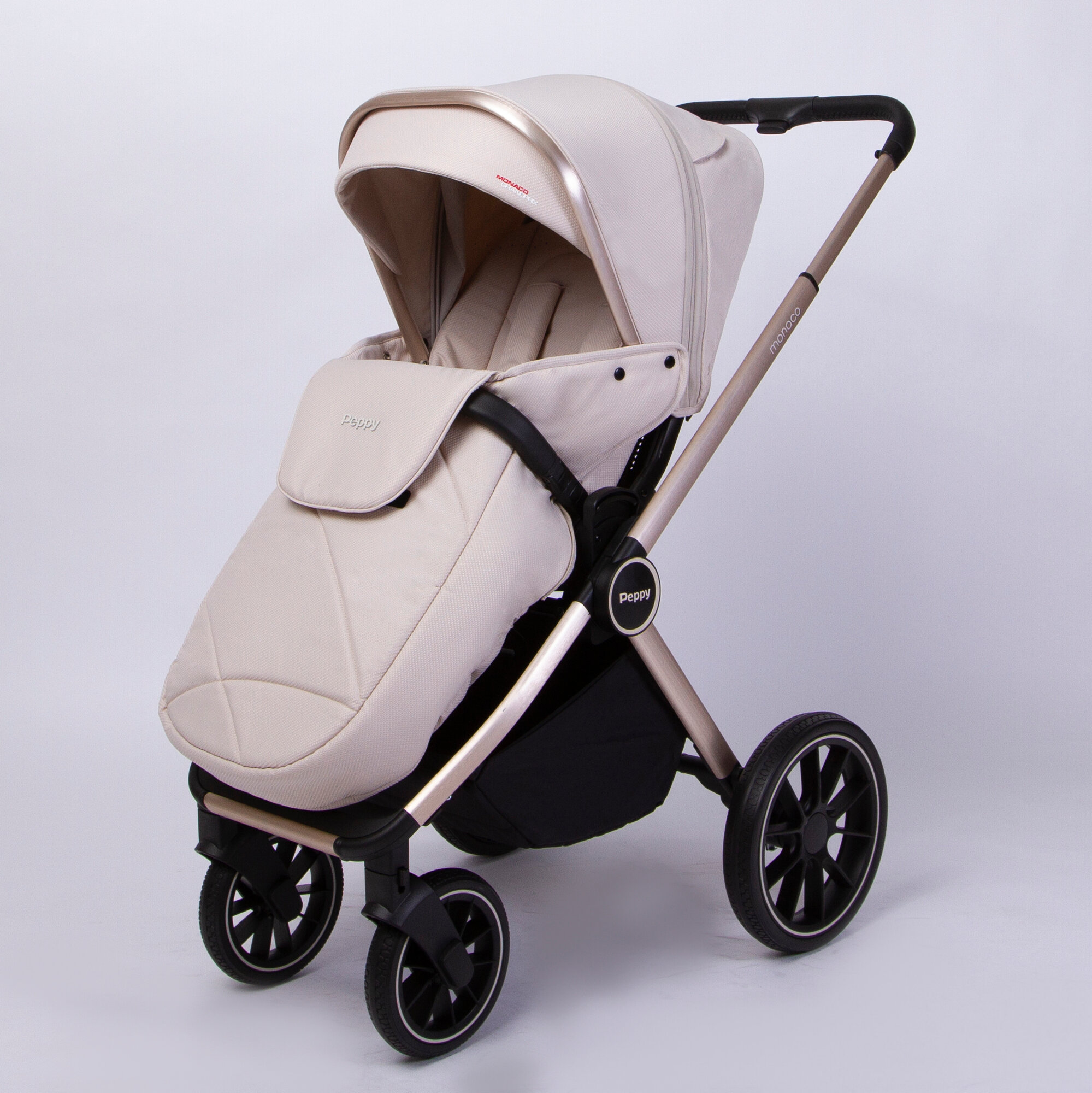 Купить Коляска детская Peppy Monaco 2 в 1 GP Beige (бежевый), рама беж, шлифованный алюминий с доставкой по всей России.