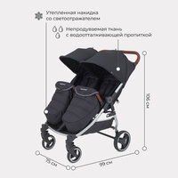 Коляска детская прогулочная для близнецов MOWbaby Tandem MB170 Black