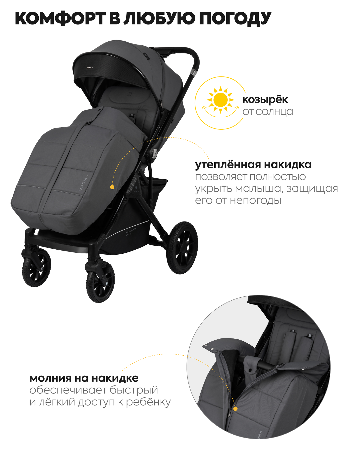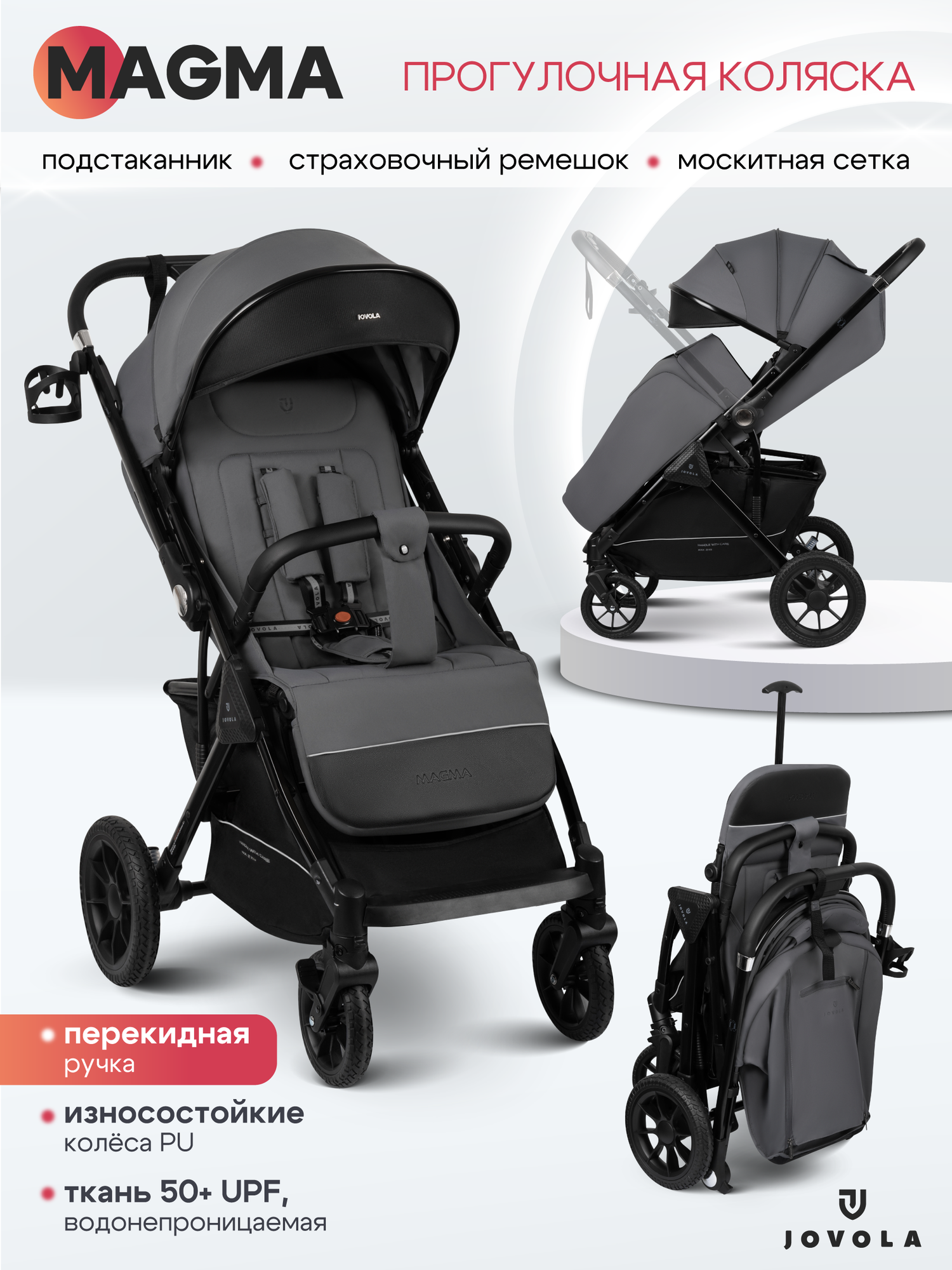 Купить Коляска детская прогулочная Jovola Magma с перекидной ручкой, темно-серый с доставкой по всей России. Коляска детская прогулочная Jovola Magma с перекидной ручкой, темно-серый: сравнение цен, характеристики, фото, актуальное наличие и цены.
