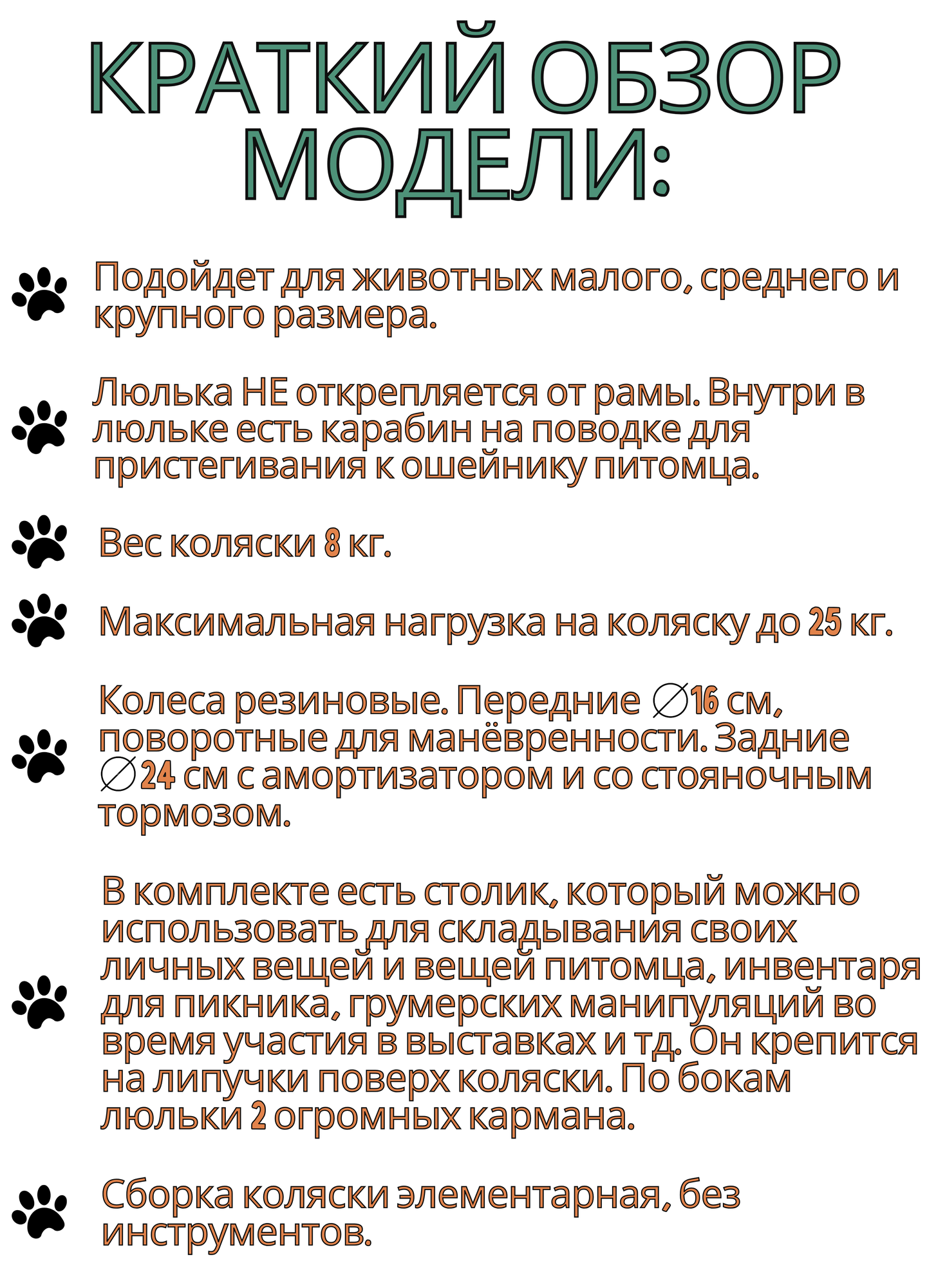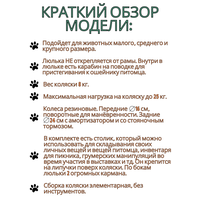 Друзья, забудьте все, что вы знали о колясках для животных до этого. Пришла революция в сферу перевозки питомцев. Ультрасовременные, мегафункциональные и единственные сертифицированные в РФ коляски от производителя Bello убедят вас в этом на 100%. ✔ бокс НЕ открепляется от рамы коляски ✔ сборка коляски элементарная, за пару минут, без инструментов ✔ резиновые, большие, проходимые колеса. Передние без амортизации диаметром 16 см, но поворотные для маневренности. Задние диаметром 24 см с амортизатором и со стояночным тормозом ✔ вес коляски 8 кг ✔ максимальная нагрузка до 25 кг ✔ со всех сторон бокса есть сетчатые окна: спереди, позади и сверху они закрываются/открываются на змейки-застежки ✔ в комплекте есть столик, предназначенный для грумерских манипуляций во время участия в выставках, который крепится на липучки поверх коляски ✔ рама складывается нажатием одной кнопки