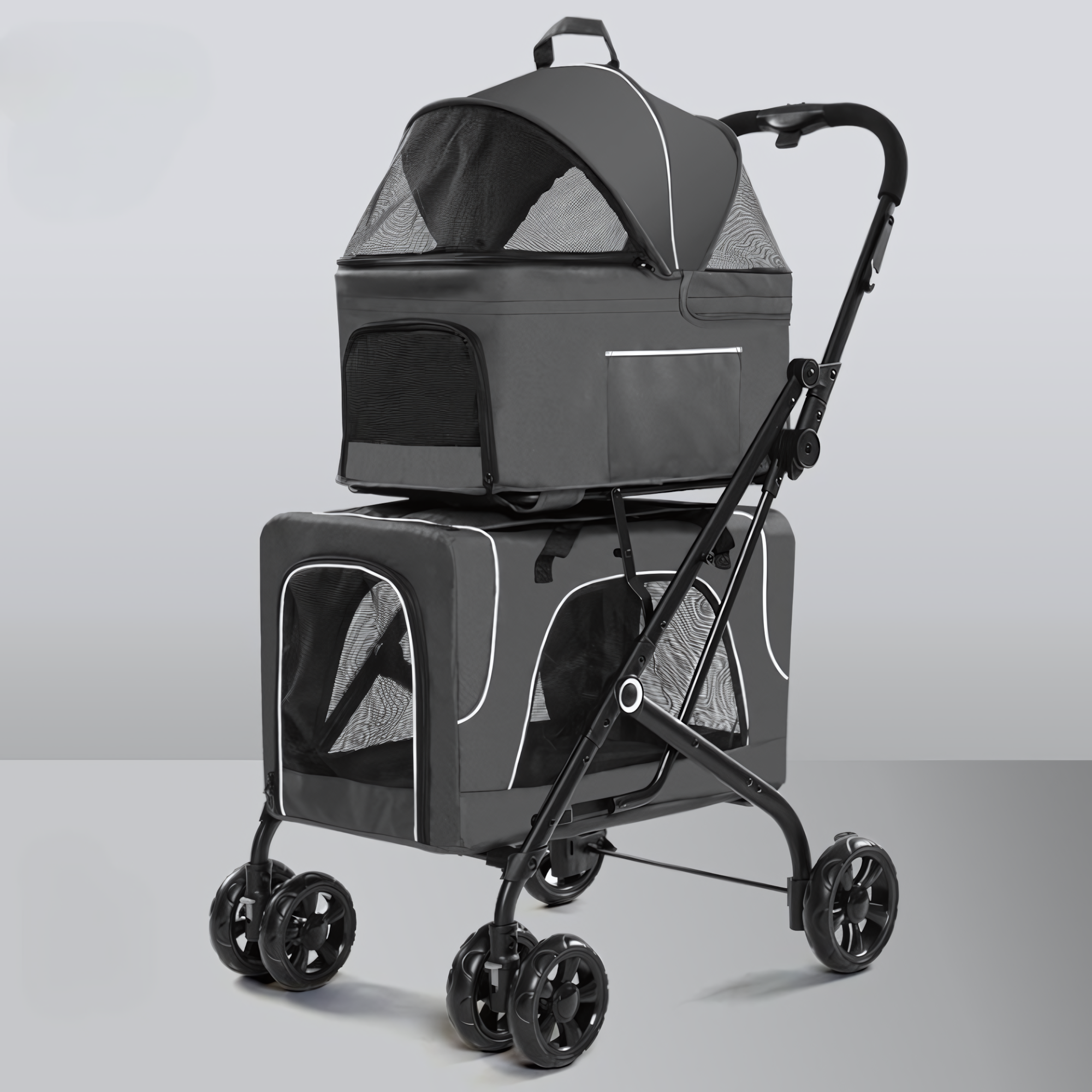 Купить Коляска для домашних животных Hello Baby, двухъярусная, складная, серая, до 30кг с доставкой по всей России.