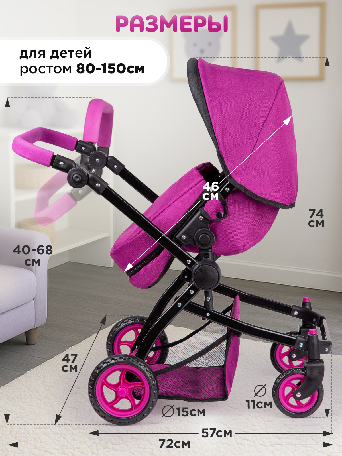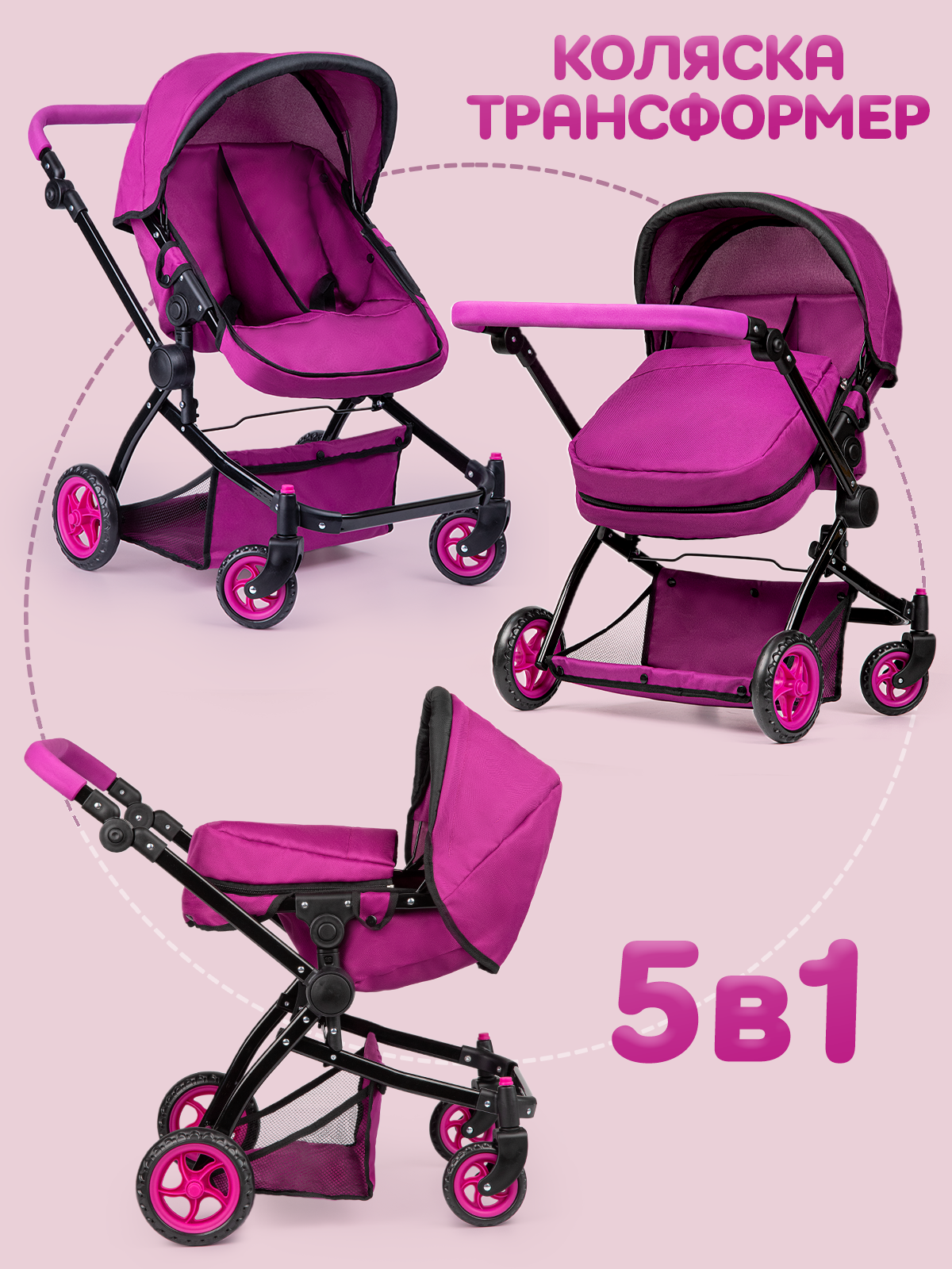 Купить Коляска для двух кукол до 45 см, металлическая, Трансформер 2 в 1, фиолетовая с доставкой по всей России.