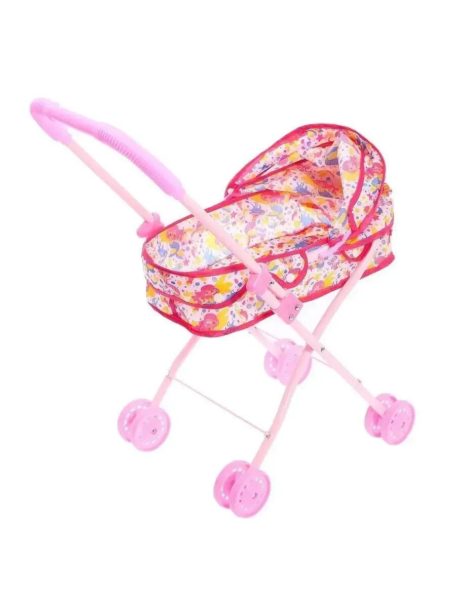 Маленькие леди с самого раннего детства проявляют интерес к сюжетно-ролевым играм, в процессе которых они интуитивно повторяют действия своих родителей. Во время игры происходит развитие материнских навыков: девочка заботится о кукле, кормит её с ложечки, пеленает и гуляет с ней. Именно по этим причинам коляска для куклы не просто полезна, но и необходима для того, чтобы разнообразить досуг ребёнка. Изделие подходит для теплой погоды. Благодаря крепким пластиковым колёсам и металлическому каркасу коляска очень устойчива при езде. Вы можете положить куколку в люльку и поднять козырёк. Высота от пола до ручки (не регулируется) — 55 см; размер люльки — 33 × 17 × 8 см; размер коляски — 49 × 23,5 × 55 см. Играйте и развивайтесь вместе с нами! Комплектация * размер люльки — 33 × 17 × 8 см; * высота от пола до ручки (не регулируется) — 55 см; * колёса (пластик).