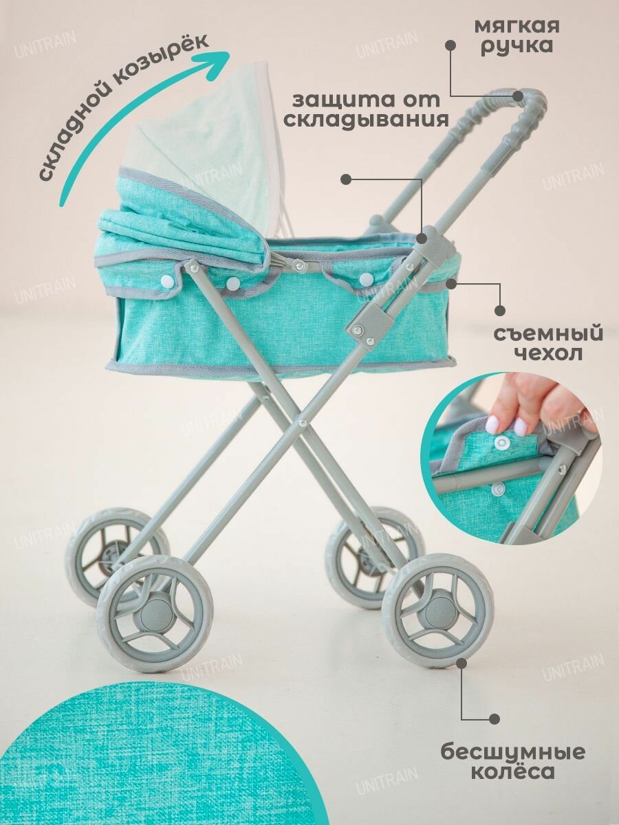 Яркая прогулочная коляска - люлька является маленькой копией настоящей коляски.
