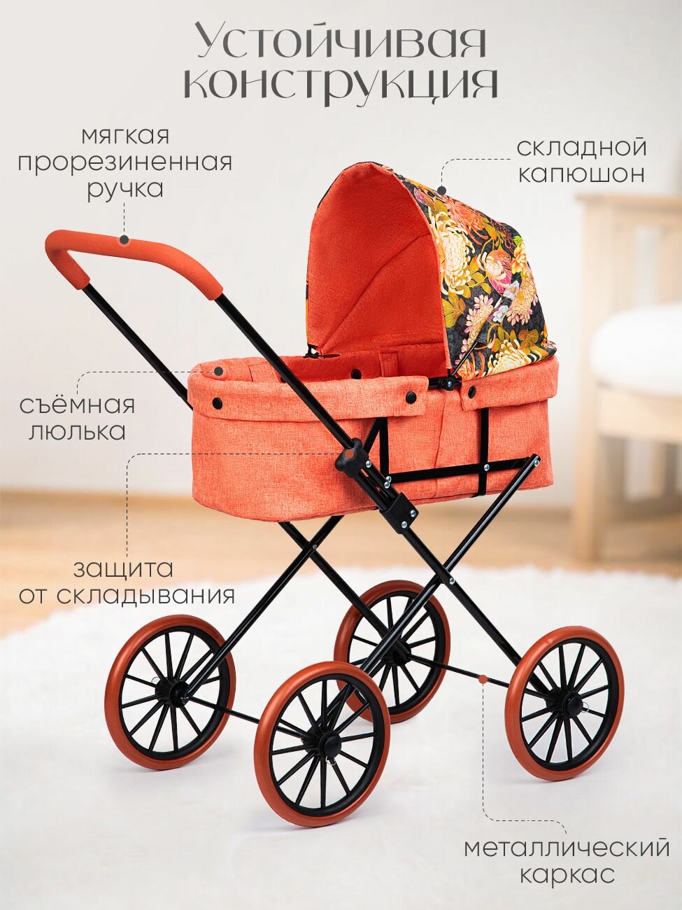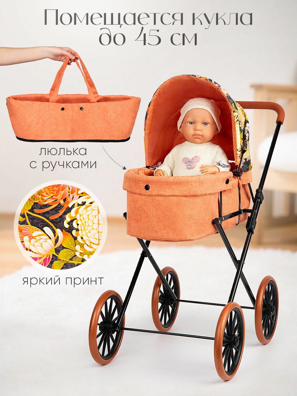 Функциональная и стильная кукольная коляска люлька подходит для сюжетных игр в «дочки-матери», прогулок с куклами или игр дома, что делает ее отличным подарком для девочки на День рождения, Новый год или любой другой праздник. Большая и удобная, эта коляска для куклы станет незаменимой игрушкой в коллекции вашего ребенка.