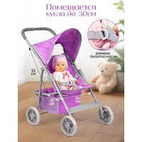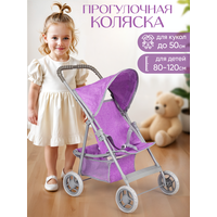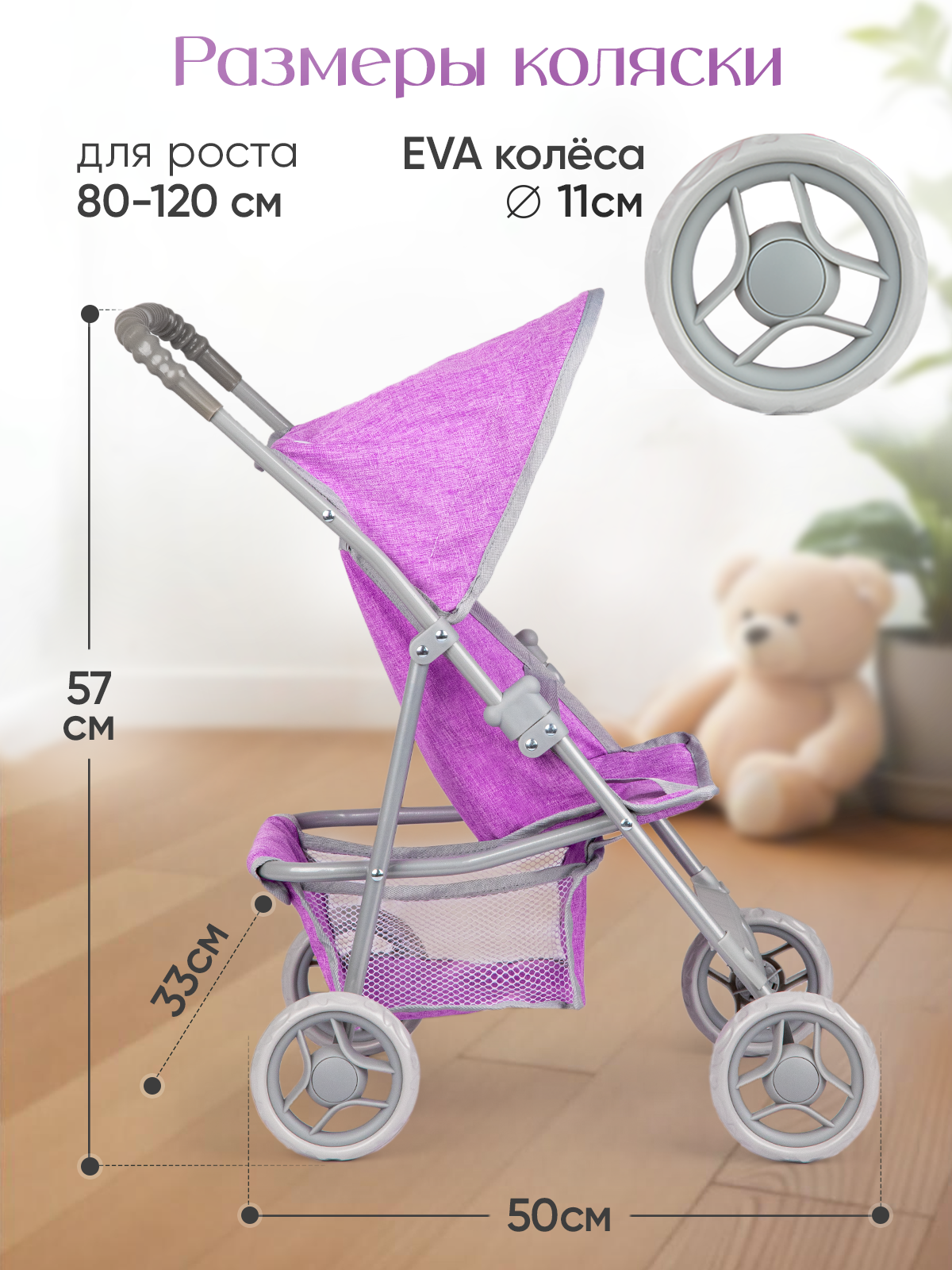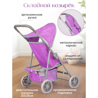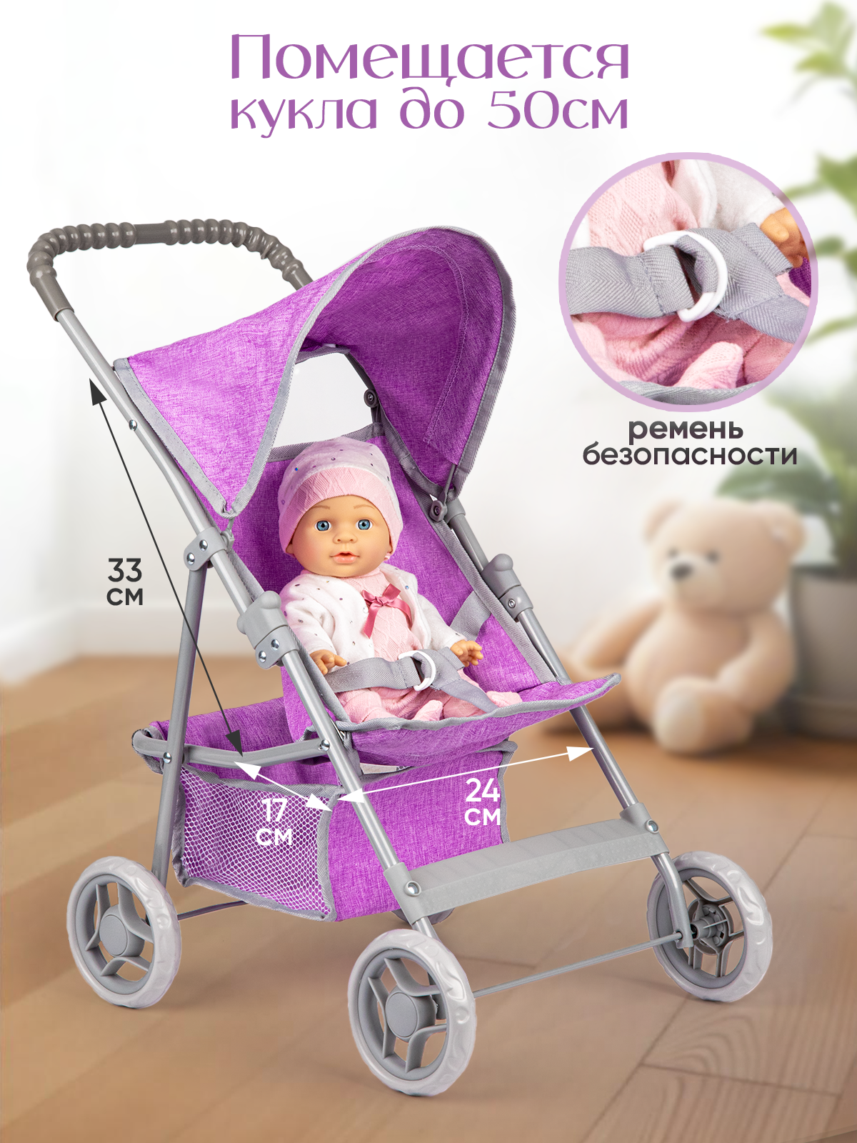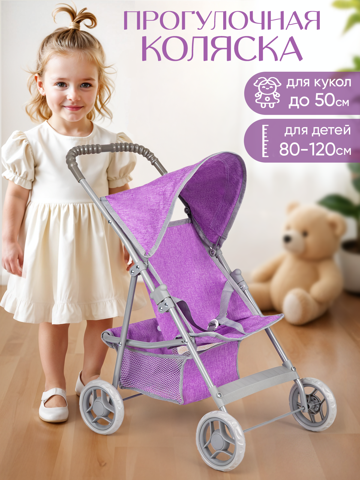 Купить Коляска для кукол до 50 см детская с корзиной, металлическая, с козырьком, фиолетовая с доставкой по всей России.
