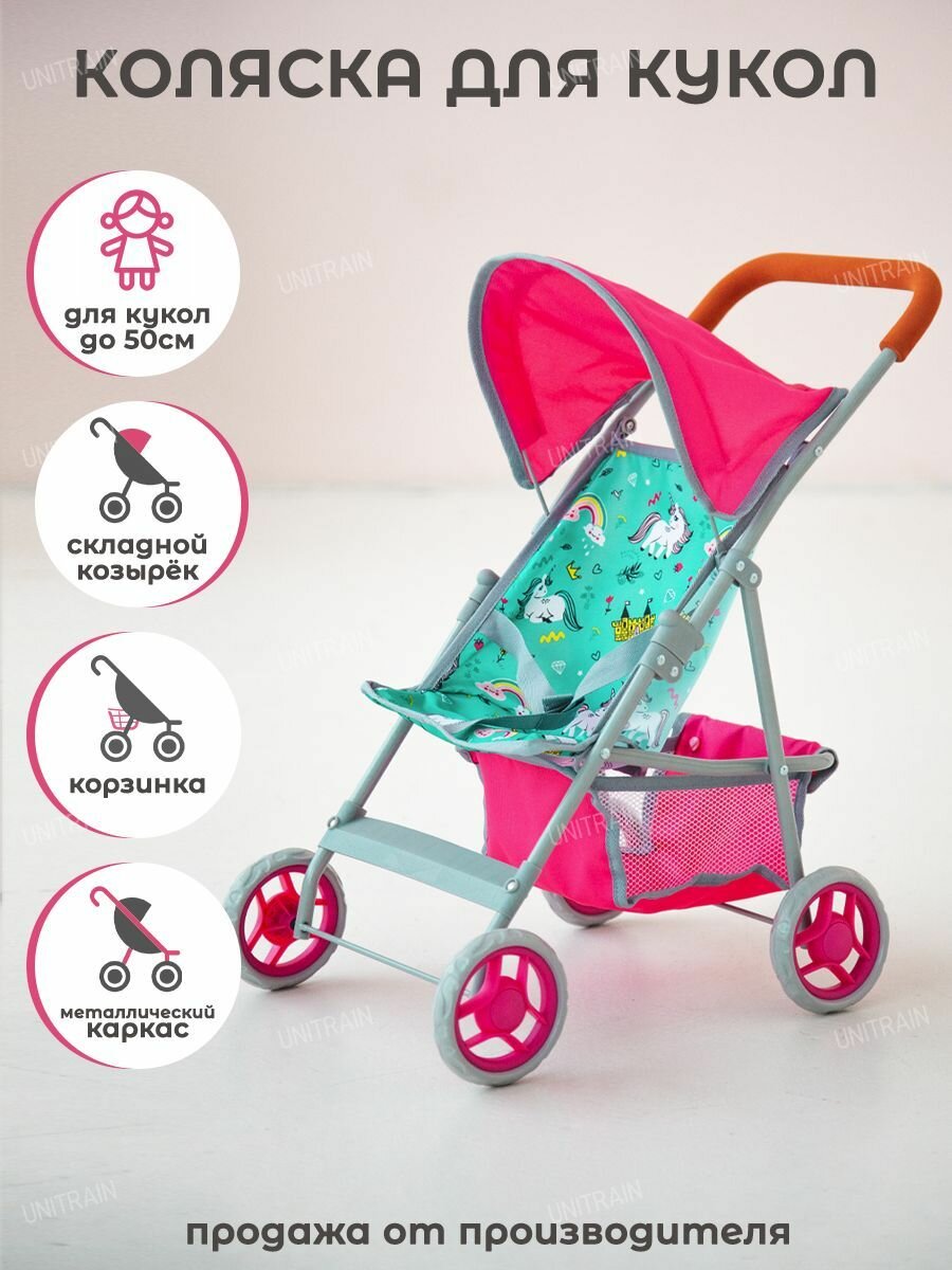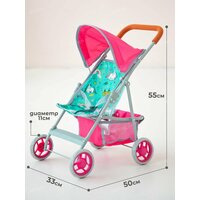 Подойдет для кукол до 50 см. Коляска выглядит как маленькая копия настоящей прогулочной коляски для малышей. Колеса прорезинены, при передвижении обеспечивают мягкость хода без шума. В большую корзину-багажник без труда влезут все игрушки малышки. Откидной капюшон, эргономичная ручка, защита от складывания. Размер коляски: 50x33x58 см. Высота от пола до ручки: 55 см. Размер сиденья: 17x23x25 см. Диаметр колёс 11 см. Яркая складная коляска для кукол станет отличным дополнением к играм ребенка.