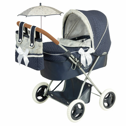 Коляска для кукол люлька испанского бренда DeCuevas Toys (ДеКуэвас Тойс), со съемной сумкой и зонтом - новинка серии Винтаж. Высота ручки от пола 60 см, подойдет для девочек от 3 до 7 лет. Вмещает куклу размером до 42 см. Серия колясок Винтаж выполнена в насыщенном синем и белом цвете. Ручка коляски декорирована мягкой коричневой накладкой и имеет регулировку по высоте. В детской коляске для кукол данной модели соединились изысканность и элегантность классического дизайна колясок конца ХIX - середины XX века и современная функциональность: Рама изготовлена из металла и снабжена текстильной корзиной. Люлька классической формы с откидным капюшоном квадратной формы, по размеру прекрасно подойдет для кукол-реборнов. Классическая Х-образная форма шасси со складным механизмом. Колеса современного дизайна обеспечивают мягкий ход и мобильность коляски. В комплекте с коляской: матрасик и подушечка с узором в цвет коляски. Самый узнаваемый продукт бренда DeCuevas Toys - большие коляски для кукол. Каждый сезон дизайнеры бренда создают новые коллекции игрушек в гармонии с последними веяниями моды и с уважением к классическим дизайнам и традициям. Коллекции колясок создаются так, чтобы можно было легко подобрать коляску под рост ребенка, учитывая высоту ручки коляски. В ассортименте бренда представлены разные типы игрушечных колясок: коляски-люльки, коляски-переноски, прогулочные коляски трости и коляски для куколок трансформеры 3в1, коляски серии reborn, коляски для плюшевых животных, детские тележки, а также кроватки, деревянная мебель, аксессуары для кукол и другие игрушки, которые не только понравятся детям, но и станут украшением детской комнаты. Кукольная коляска трансформер приятно удивит своей практичностью, а прогулка с коляской для плюшевых собак и кошек подарит массу позитивных эмоций. Игрушки DeCuevas Toys подходят для испанских кукол бренда Munecas dolls ANTONIO JUAN.