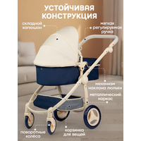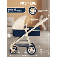 Купить Коляска для кукол металлическая до 60 см трансформер со съемной люлькой бежево-синяя с доставкой по всей России.