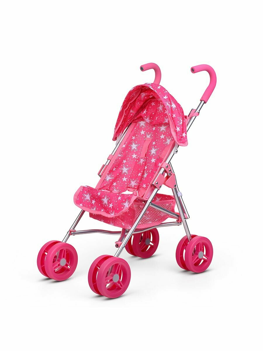 Купить Коляска для кукол металлическая, прогулочная, складная, цвет Звезды на розовом, трость, 9642A Melobo с доставкой по всей России.