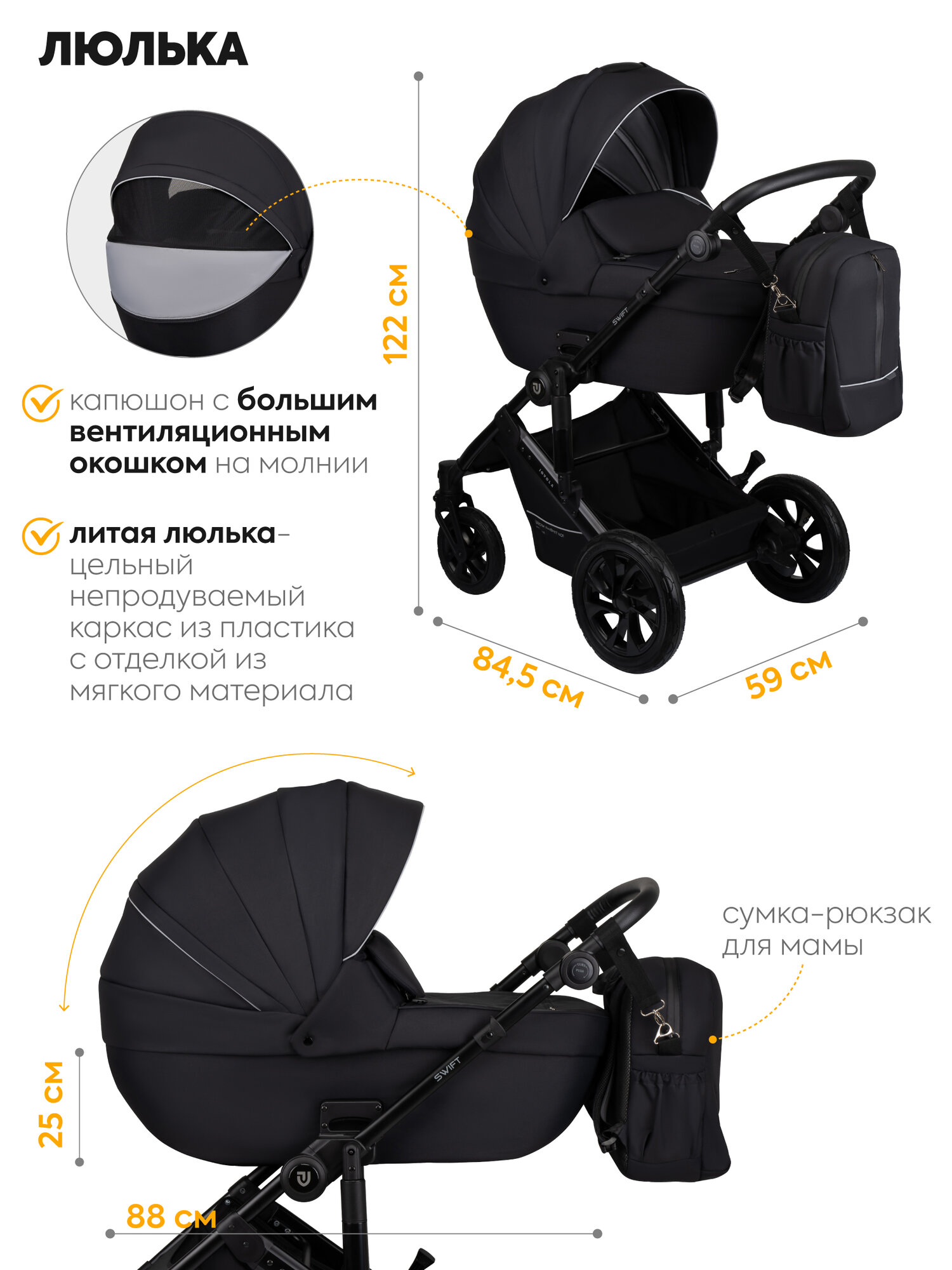Коляска для новорожденных 2 в 1 Jovola Swift универсальная, всесезонная с с реверсивным блоком, черный: сравнение цен, характеристики, фото, актуальное наличие и цены.