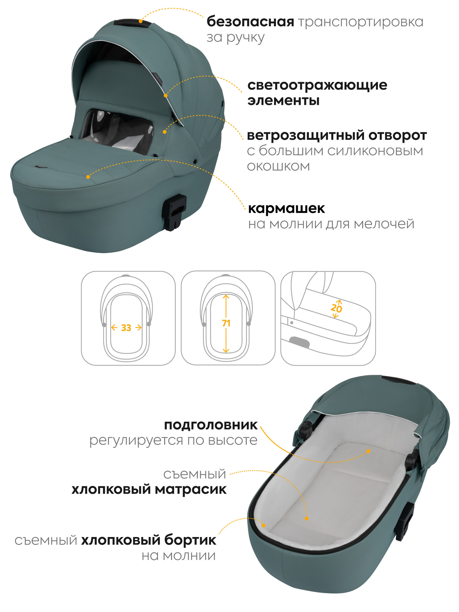 | Длина люльки | 71x33 см, 5.20 кг |