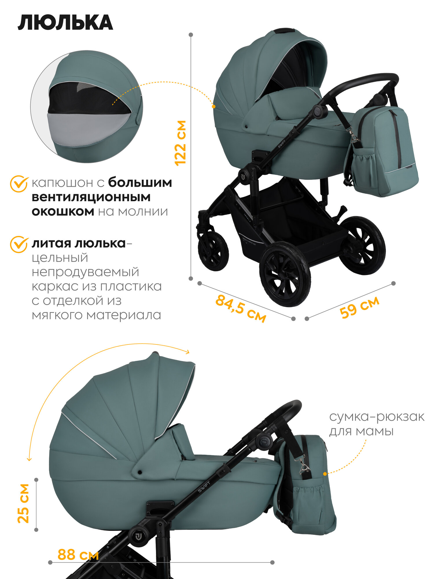 Коляска для новорожденных 2 в 1 Jovola Swift универсальная, всесезонная с с реверсивным блоком, зеленый: сравнение цен, характеристики, фото, актуальное наличие и цены.